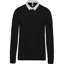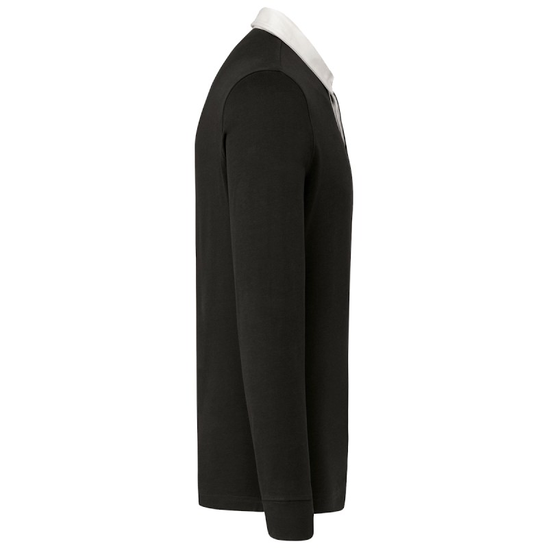 100% coton. Coton peigné jersey pré-rétréci. Col en coton sergé contrasté blanc (sauf coloris Red et Dark Grey avec col Black). Patte 3 boutons. Poignets en côtes 1x1. Bande de propreté chevron intérieur col et fentes latérales.