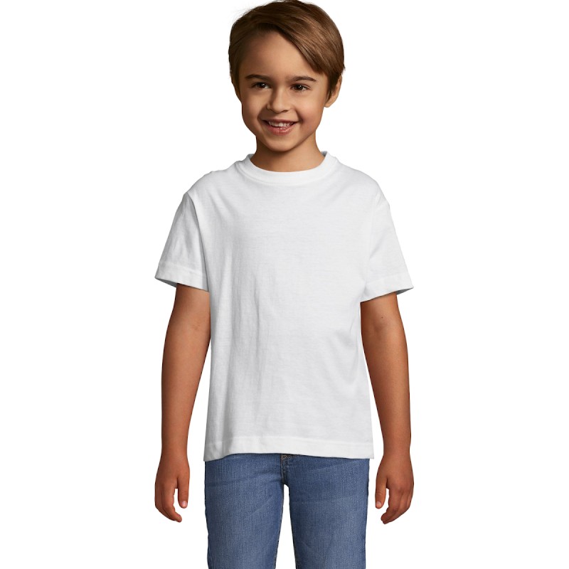 Bande de propreté au col Col avec bord côte élasthanne Manches courtes Coupé cousu (2-6 ans) ou tubulaire (à partir du 8 ans)