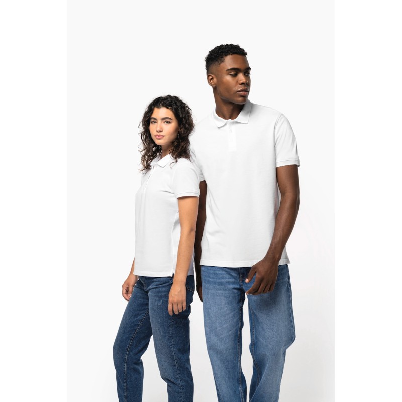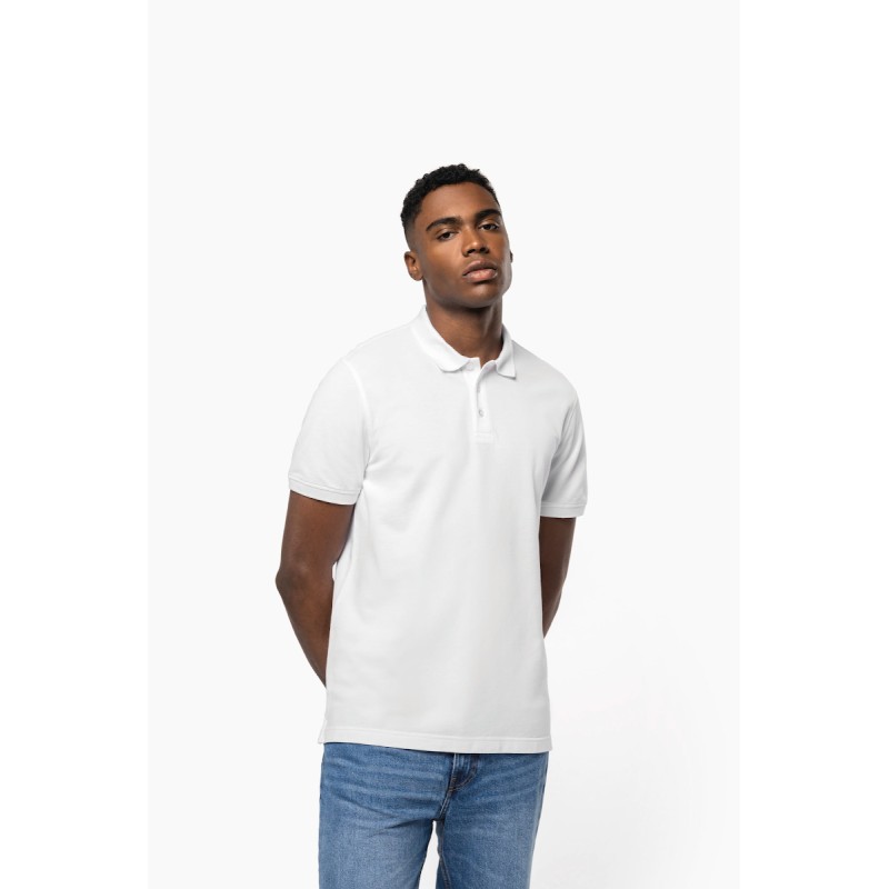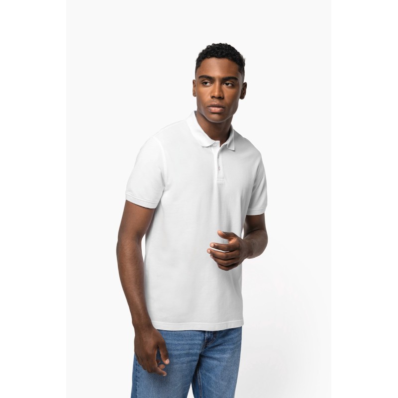 100% coton. Coton peigné. Maille piquée. Coupe ajustée. Coutures côtés. Fabriqué au Portugal. Col et finition bas de manche en bord côte 1x1. Patte de boutonnage à 3 boutons contrastés effet nacré sur toutes les couleurs. Bande de propreté en matière principale ton sur ton en finition intérieur de col. Renfort épaule. Fentes latérales. Finition double surpiqûres bas de vêtement. Pas d'étiquette de marque, uniquement une puce de taille déchirable pour faciliter la personnalisation.