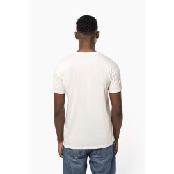 Coloris unis : 100% coton. Coloris Ash Heather : 98% coton / 2% viscose. Coloris Oxford Grey : 90% coton / 10% viscose. Coloris Wine Heather, French Navy Heather, Green Marble Heather, Cloudy Blue Heather : 80% coton / 20 % polyester recyclé. Coloris Grey Heather : 70% coton / 30% polyester recyclé. Tous les coloris sont fabriqués à partir de coton en conversion biologique. Coton peigné. Encolure ronde en bord-côte avec élasthanne. Bande de propreté ton sur ton à l'encolure. Coupe Tubulaire. Finition double aiguille bas de manches et bas de vêtement.