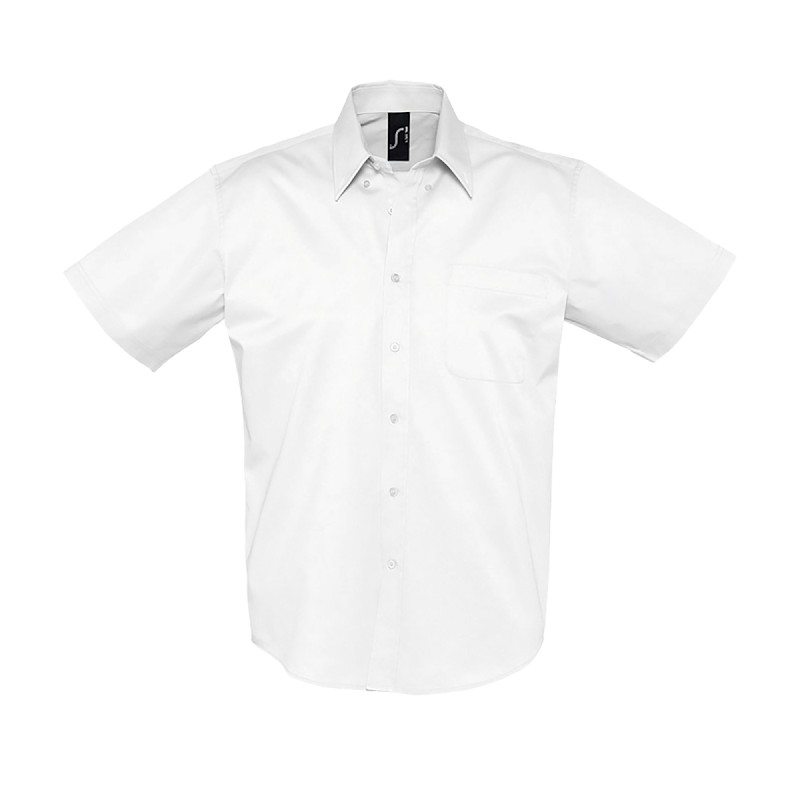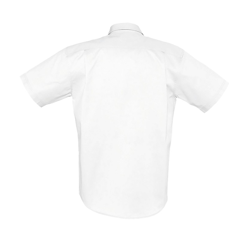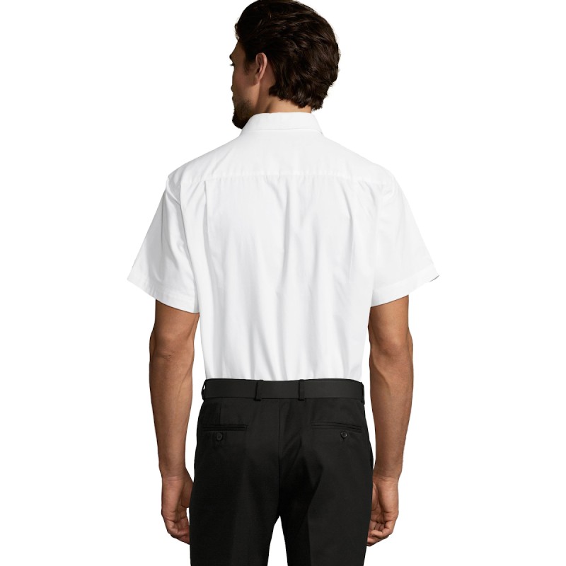 Coupe droite Manches courtes Col classique 2 boutons Patte 7 boutons ton sur ton Poche côté cœur 2 boutons de rechange