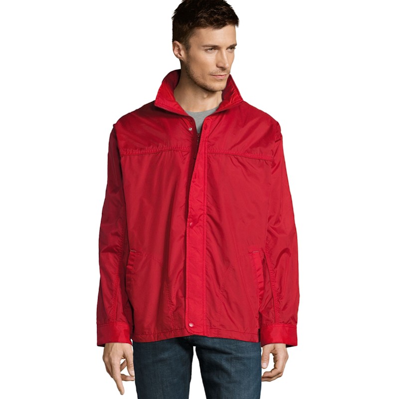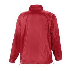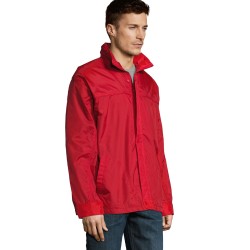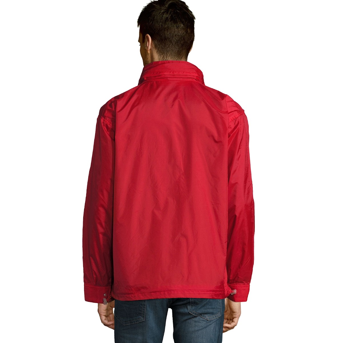 Ouverture avec patte, zip et boutons pressions Poignets ajustables par pression Nombreuses poches Capuche pliée dans le col Œillets d’aération Fentes côtés avec élastique de serrage et embouts