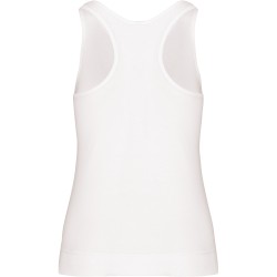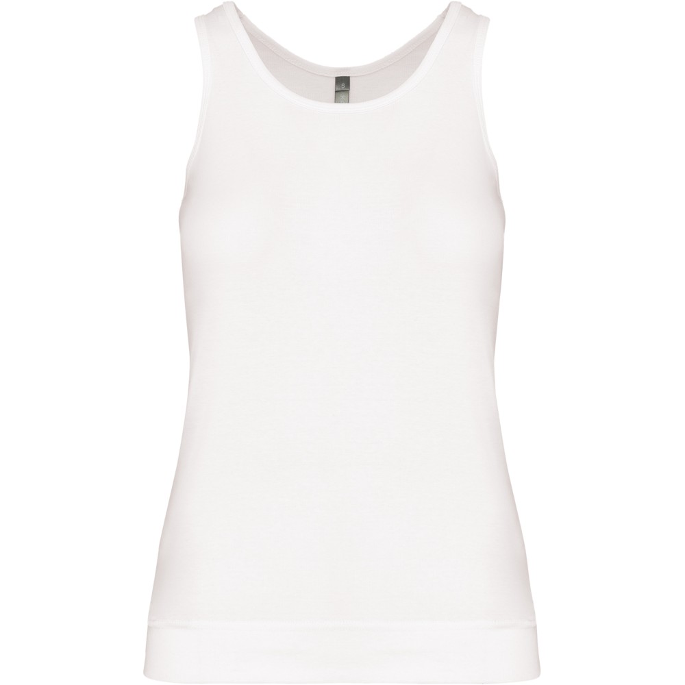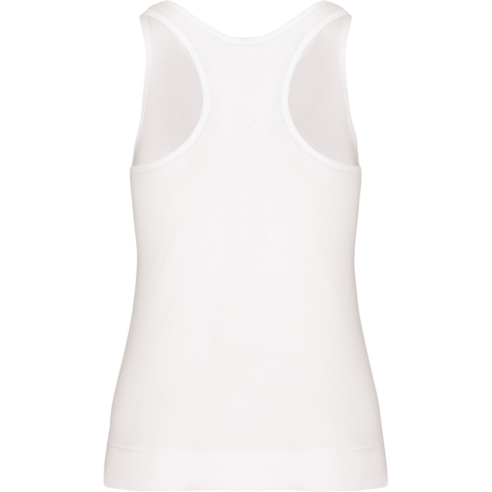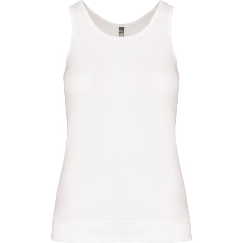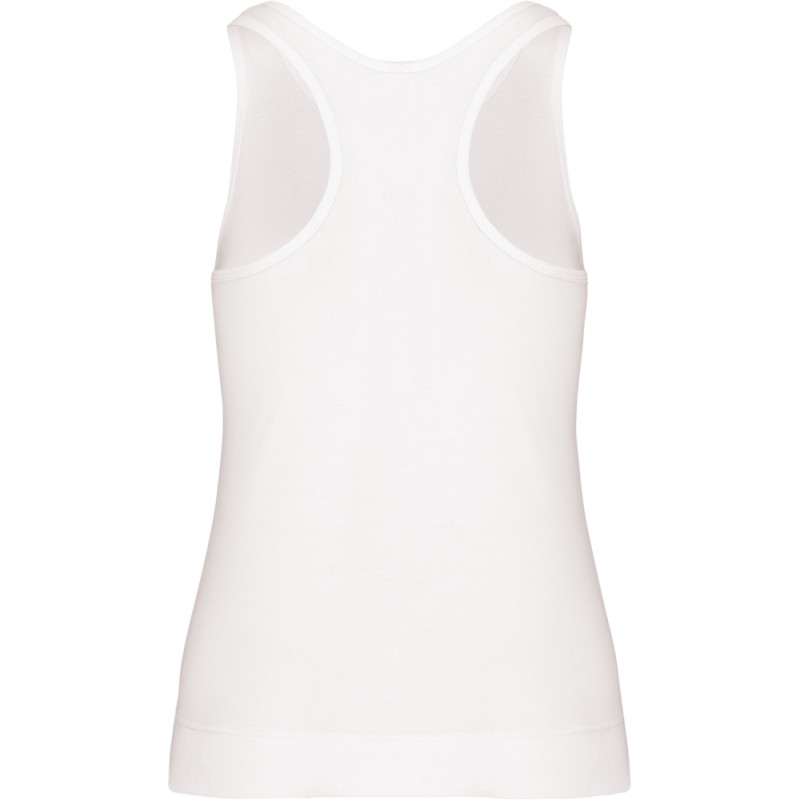 100% coton. Côte 1x1. Dos nageur. Finition double aiguille.