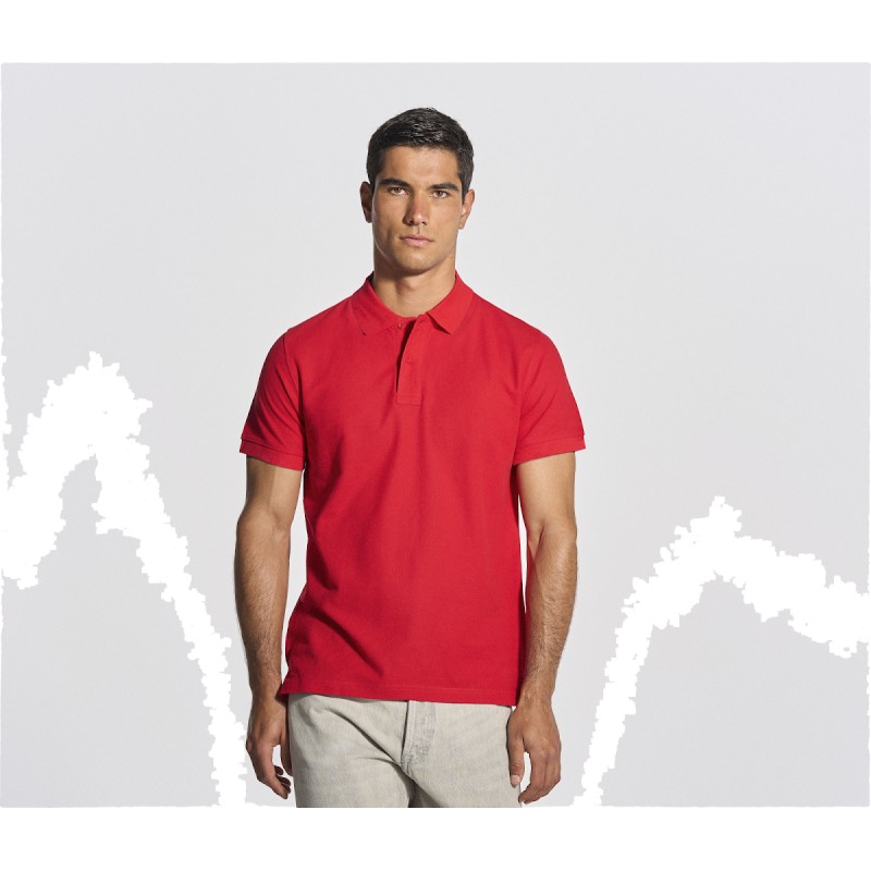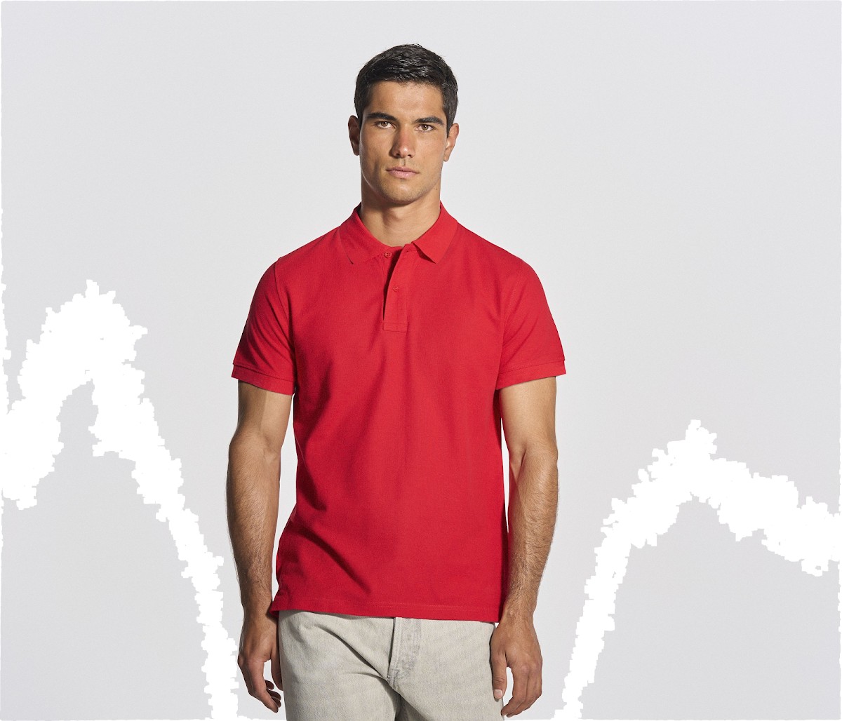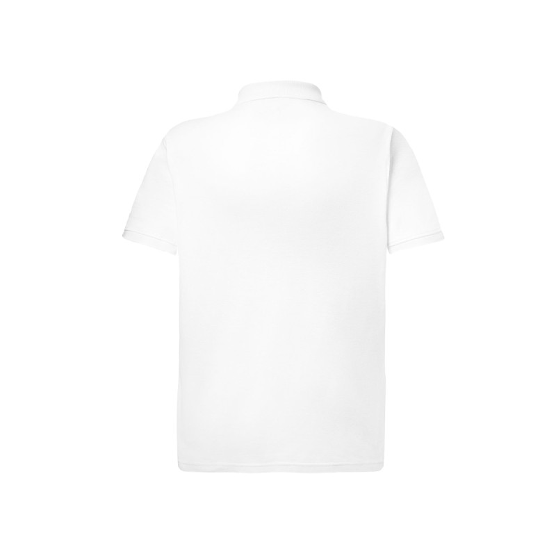 Maille piquée. Patte de boutonnage à deux boutons. Col en côte 1x1.