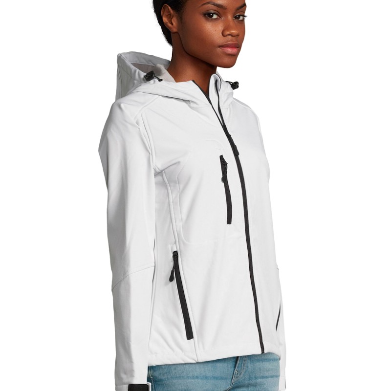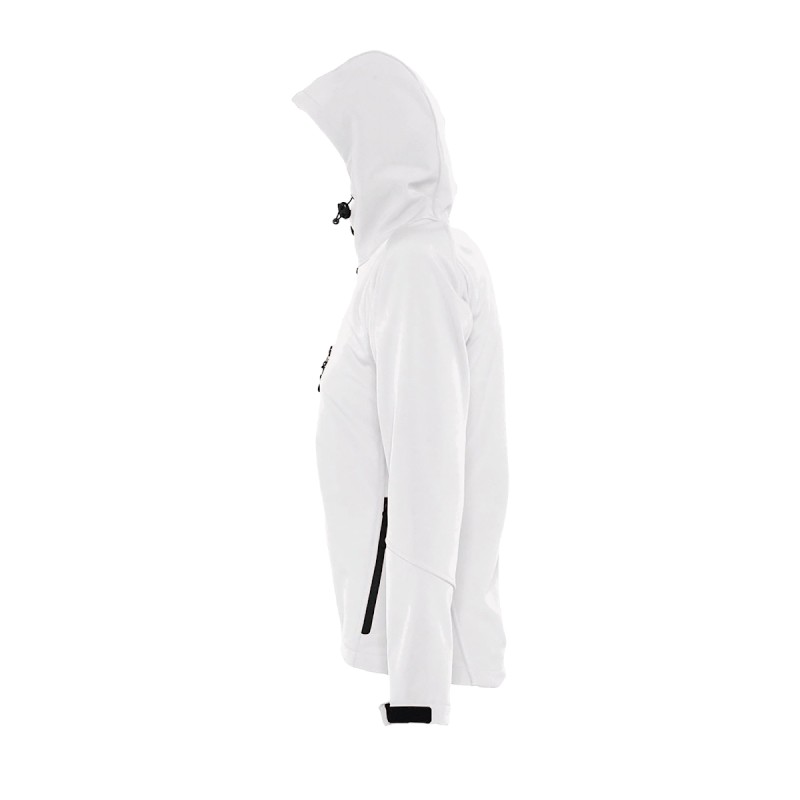 2 poches latérales et 1 poche poitrine zippées Cordon de serrage réglable à la taille Bas de manches ajustables avec bande auto-agrippante Capuche avec cordon de serrage