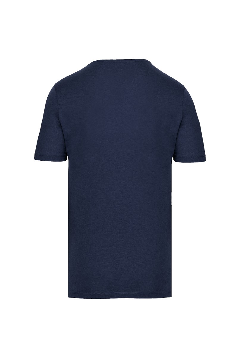 Coloris Unis : 100% coton biologique. Coloris Ocean Blue Heather : 80% coton biologique / 20% polyester. Encolure ronde avec bords francs. Finitions double aiguille bas de manches et de vêtement. Pas d'étiquette de marque au col, uniquement une puce de taille pour faciliter la personnalisation.