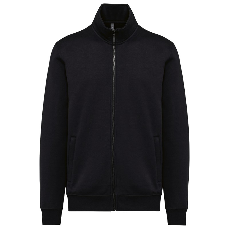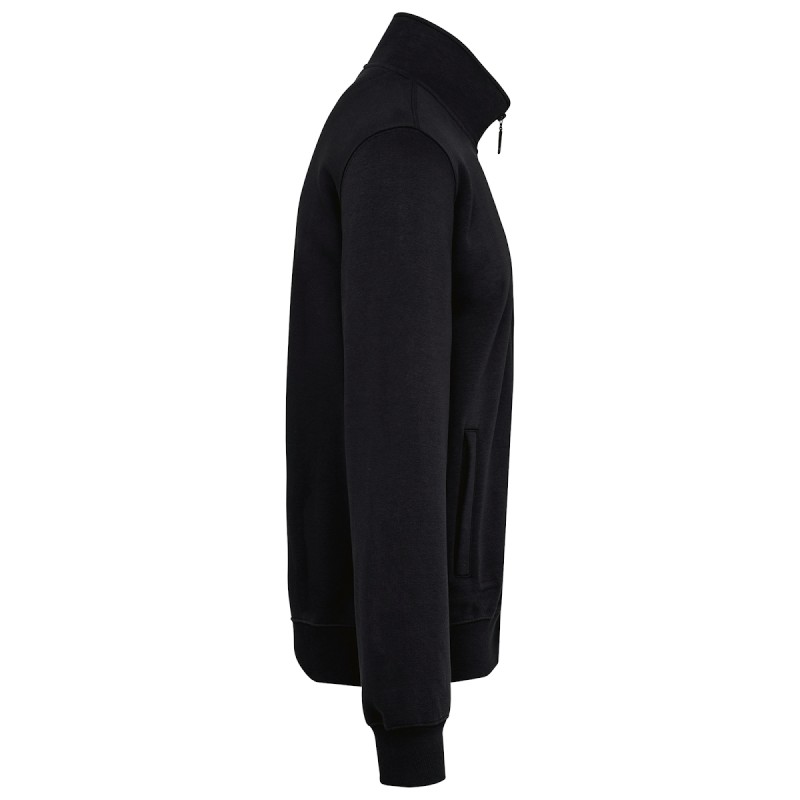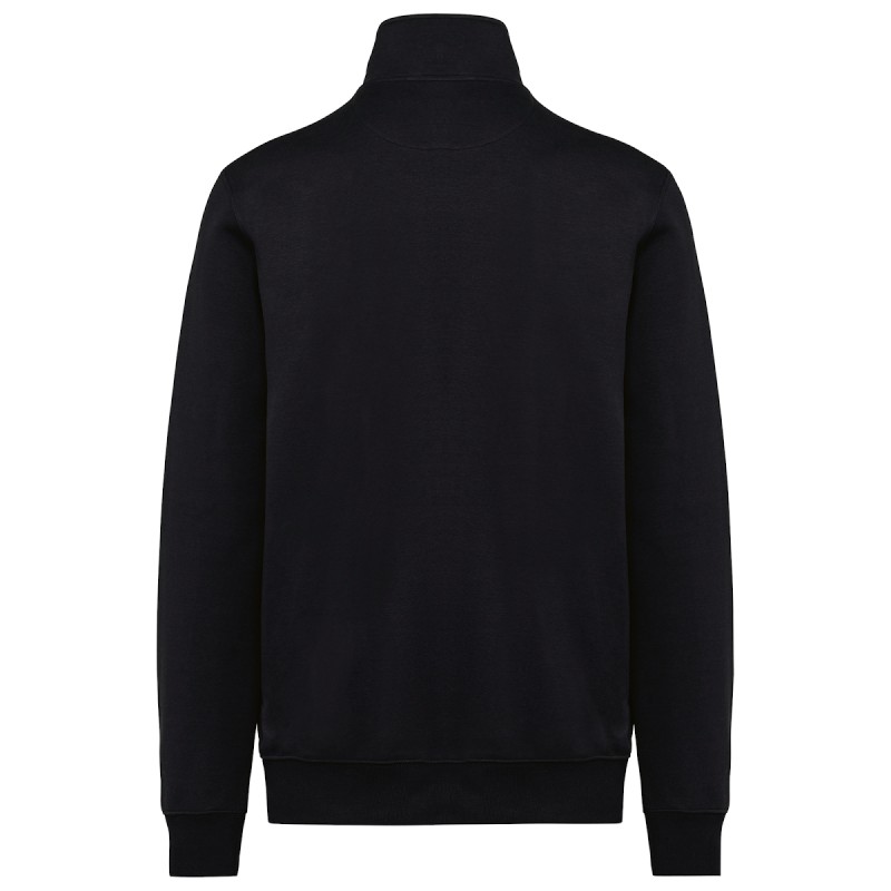 80% coton / 20% polyester. Surface extérieure 100% coton peigné. Traitement LSF (Low Shrinkage Fleece : molleton prérétréci). Molleton gratté 3 fils en coton peigné. Coupe ajustée. Manches droites. Col montant. Fermeture zippée plastique ton sur ton. 2 poches zippées et passepoilées côté. Finition demi-lune à l'encolure dos pour faciliter la personnalisation de marque à l'intérieur col. Finition bord-côte 1x1 bas de manches et de vêtement. Etiquette de marque Tear Away.