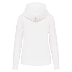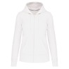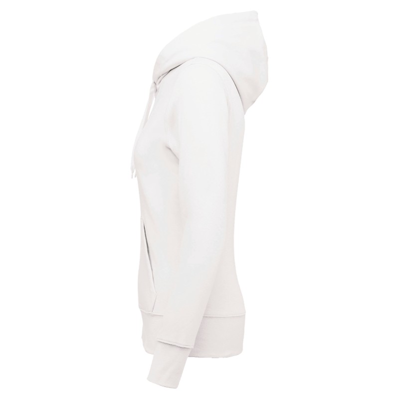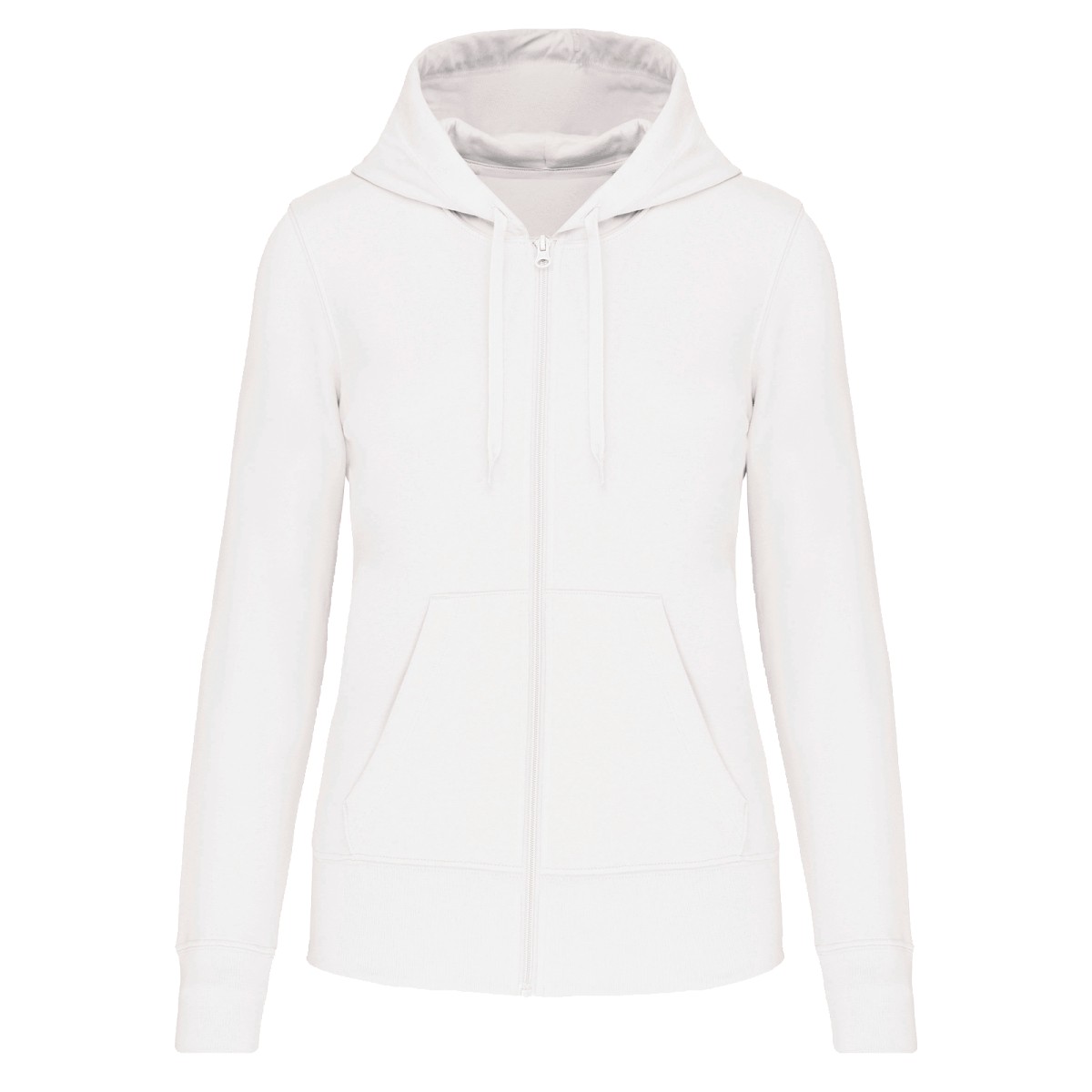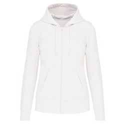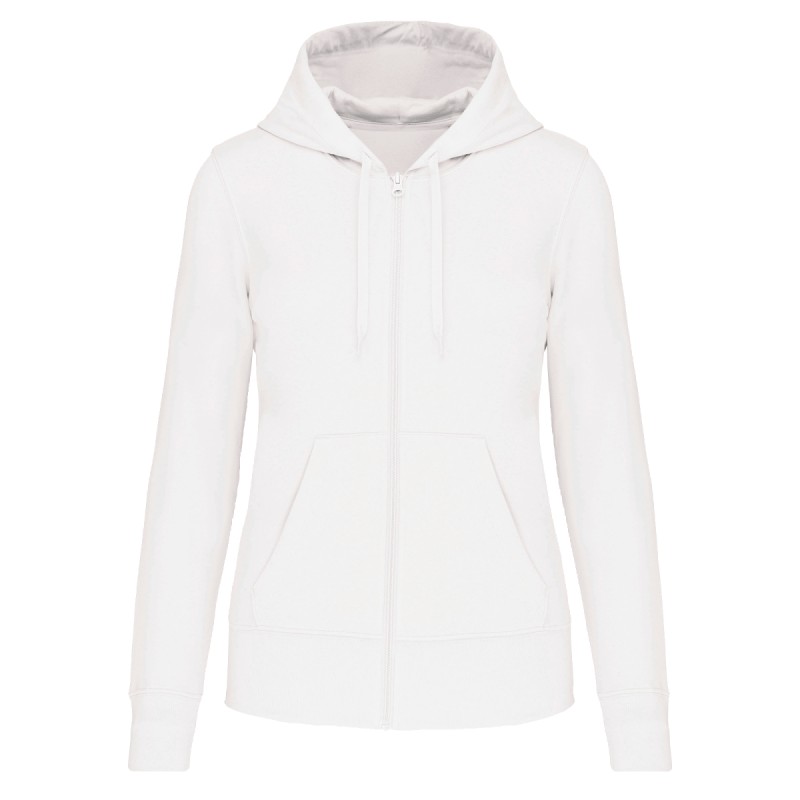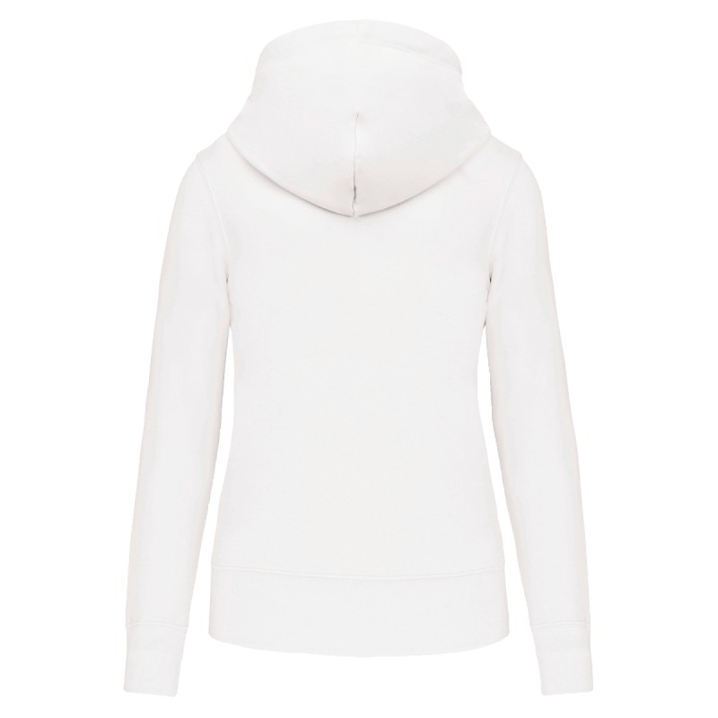 85% coton biologique / 15% polyester recyclé post-consumer. Surface extérieure 100% coton peigné. Molleton gratté 3 fils LSF (Low Shrinkage Fleece). Lavage aux enzymes. Coupe droite. Poches kangourou. Fermeture zippée nylon ton sur ton. Capuche doublée 100% coton, coton jersey 180g. Bord-côte 1x1 montage tubulaire pour une meilleure finition au bas de manches et de vêtement. Bande de propreté jersey ton sur ton et finition demi-lune intérieur col. Finition double aiguilles sur bas de manches, bas de vêtement et col. Pas d'étiquette de marque au col, juste une puce de taille pour faciliter la personnalisation.