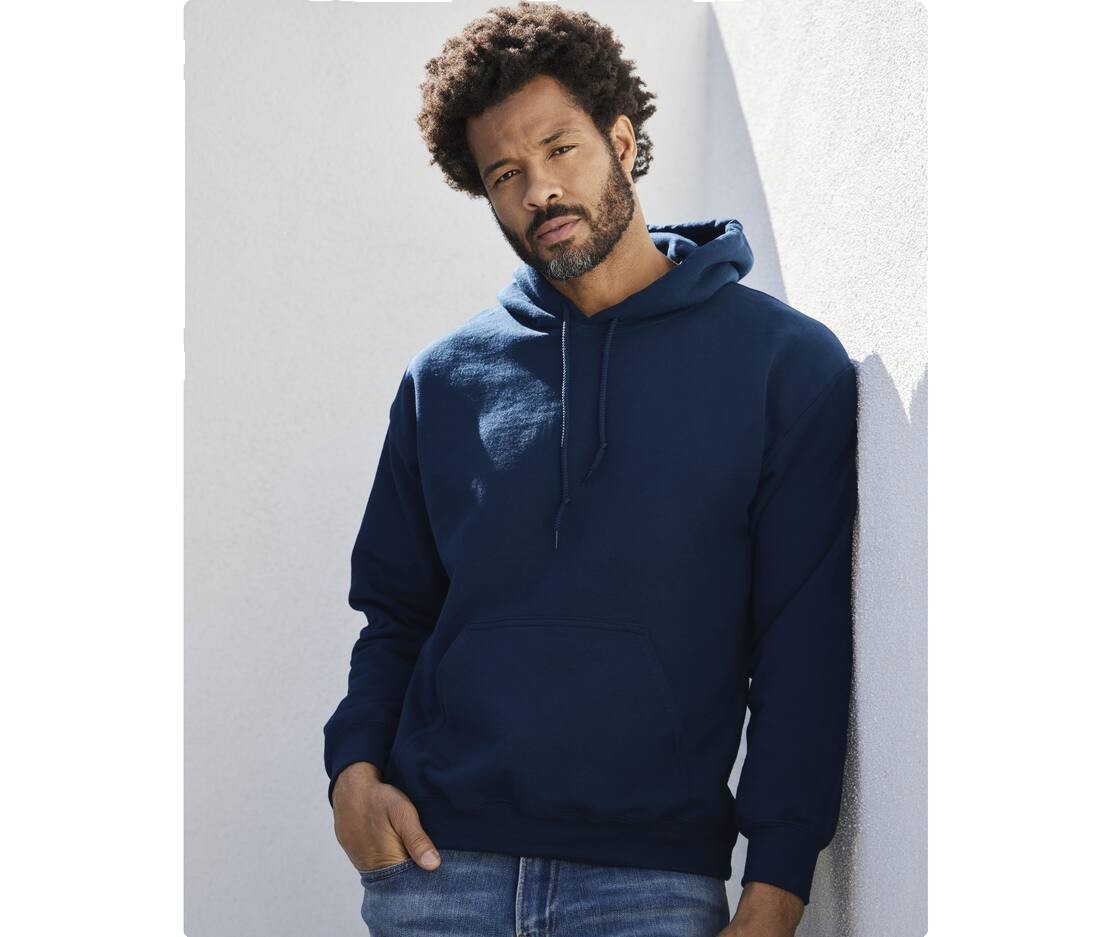 50% coton / 50% polyester DryBlend®. Molleton interieur gratté pré-rétreci. Fil Air Jet - pour une surface plus douce et anti-boulochage. Couture double point sur poignets, bordures, épaules et emanchures avec élasthanne. Coupe classique.
