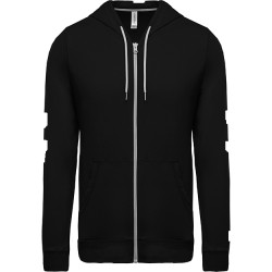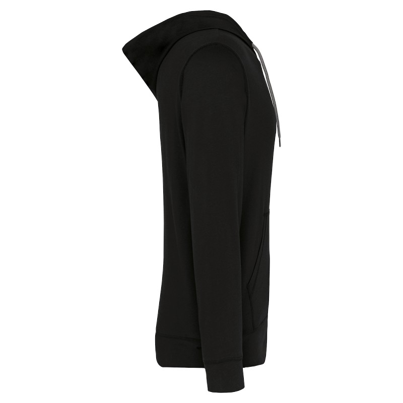 100% coton (Oxford Grey : 90% coton / 10% viscose). Coton peigné avec lavage aux enzymes. Toucher très doux. Coupe moderne et décontractée. Bande de propreté contrastée à l'encolure (Dark Grey pour le coloris Oxford Grey et Oxford Grey pour les autres coloris). 2 poches kangourou. Poignets et bas de vêtement en tissu principal. Zip contrasté et cordon de serrage capuche bicolore.