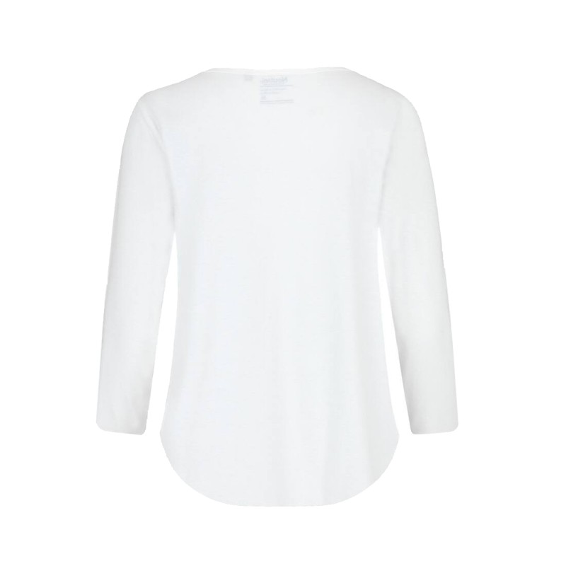 100% ORGANIC FAIRTRADE COTTON - SINGLE JERSEY KNIT - 155GSM. LOOSE FIT - THREE QUARTER SLEEVES - CURVED HEM - ROUND SCOOP NECK - DOUBLE-LAYERED NECKBAND - RINGSPUN COMBED COTTON.WASH AT 40 DEGREES, MAX TEMP. IS 60 DEGREES, TUMBLE DRY AT LOW HEAT, IRON AT LOW TO MEDIUM HEAT, DO NOT DRY CLEAN, DO NOT BLEACH