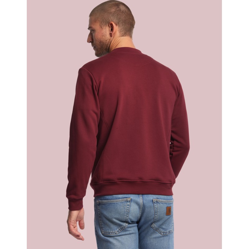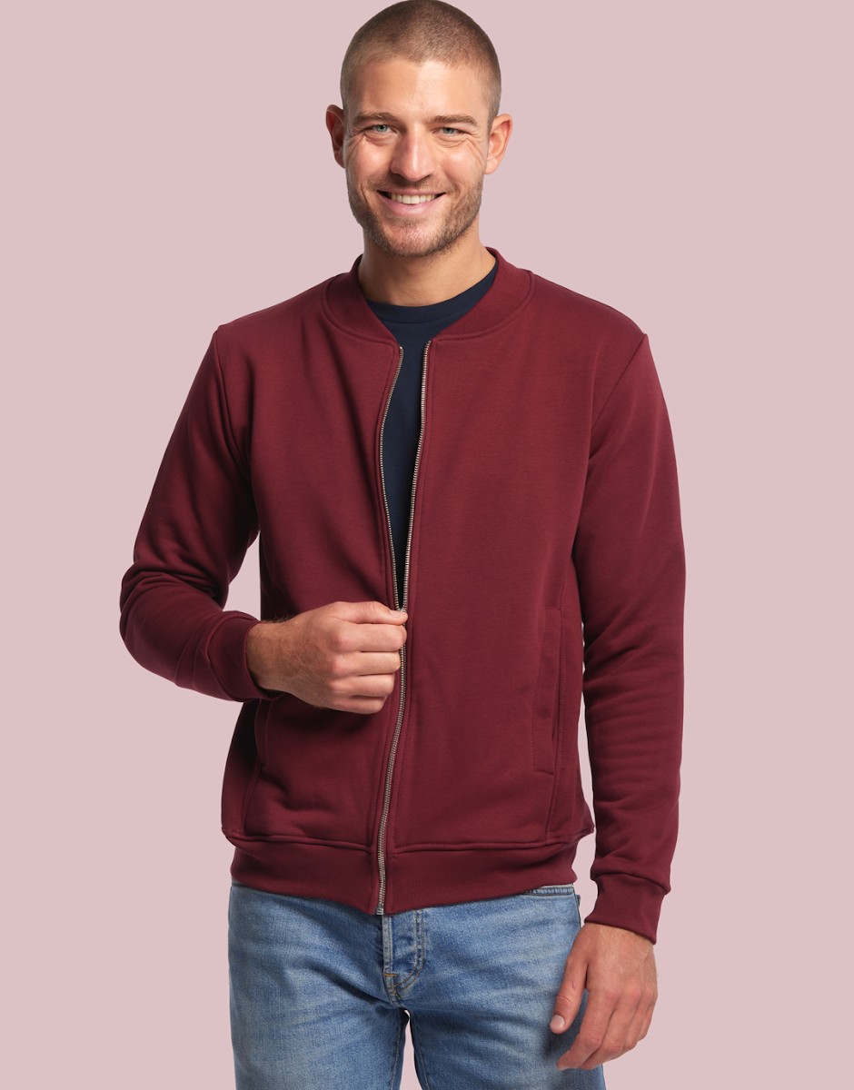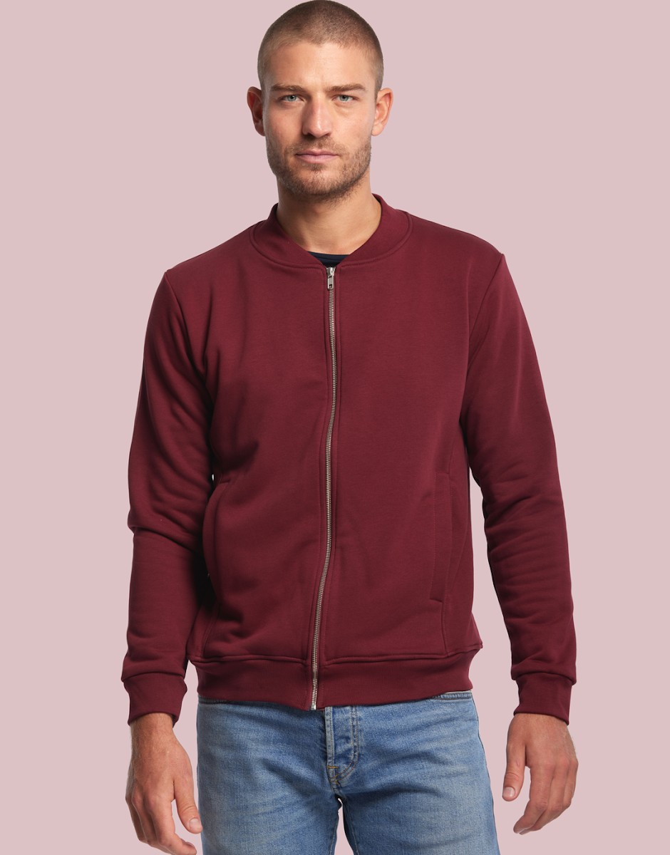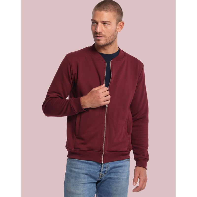 Blouson Made in France façon Teddy. 80% coton biologique certifié OCS, 20% polyester recyclé. 2 poches mains passepoilées. Matière Terry 350g/m² lavée, non grattée pour éviter le boulochage + traitement silicone pour améliorer la longévité du vêtement. Col en demi lune. Double piqure en bas de veste. Bande de propreté au col. Zip central YKK. Disponible sur stock et livré sous 24/48h sans personnalisation, coloris disponibles : Blanc, Marine, Noir, Bordeaux, Vert Bouteille, Vert Bouteille, Gris Chiné Clair, Gris Chiné Foncé dans les tailles XS, S, M, L, XL, 2XL, 3XL