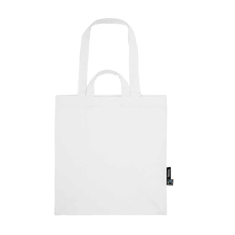 100% ORGANIC FAIRTRADE COTTON - TWILL WEAVE - 210GSM ONE SIZE. HEAVY TWILL WEAVE - LONG & SHORT HANDLES - BOTTOM & SIDE GUSSET - REINFORCED AT STRESS POINTS - NEUTRAL® & FAIRTRADE FLAGLABELS AT SIDE. .WASH AT 40 DEGREES, MAX TEMP. IS 60 DEGREES, TUMBLE DRY AT LOW HEAT, IRON AT LOW TO MEDIUM HEAT, DO NOT DRY CLEAN, DO NOT BLEACH