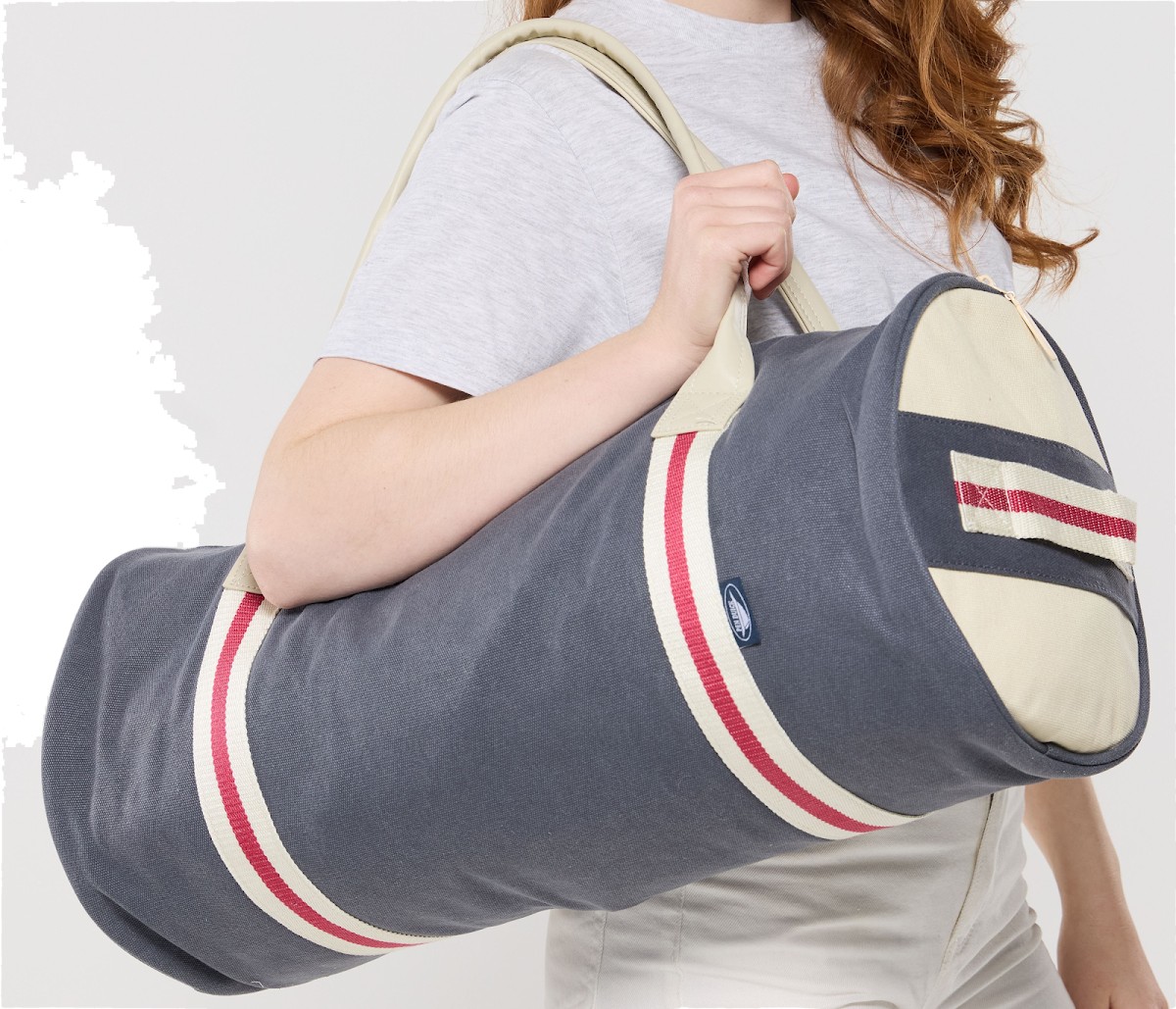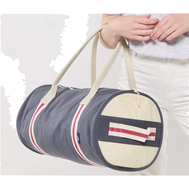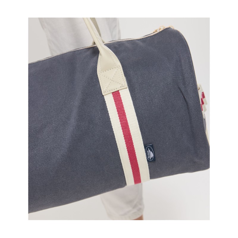 Coton canvas délavé pour esprit marin. Poche intérieure zippée. Poignée sur le côté pour être porté à la main.