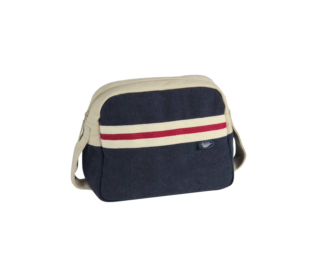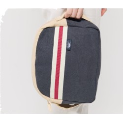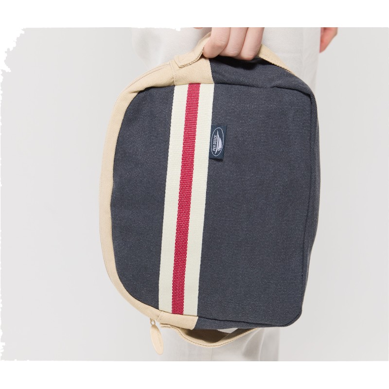 Trousse de toilette avec compartiment zippé. Poche intérieure zippée. Coton canvas délavé pour esprit marin.