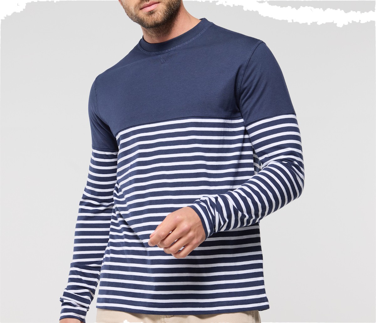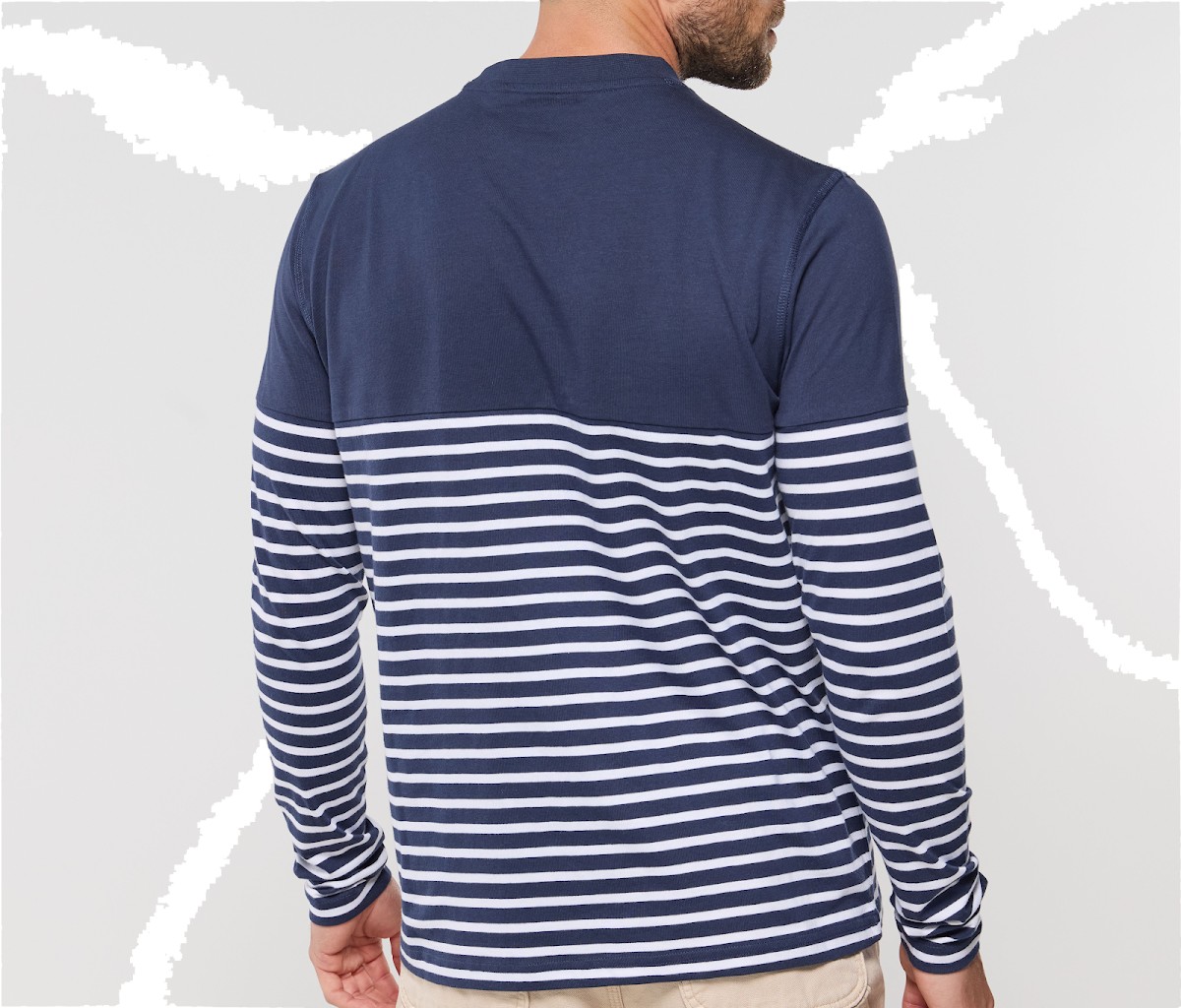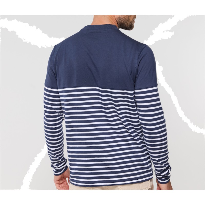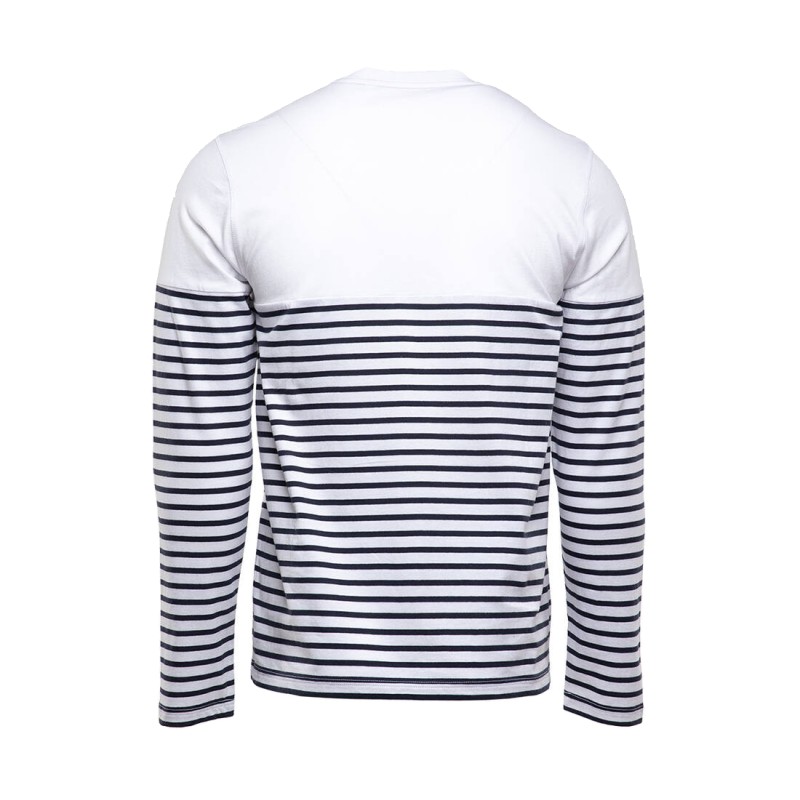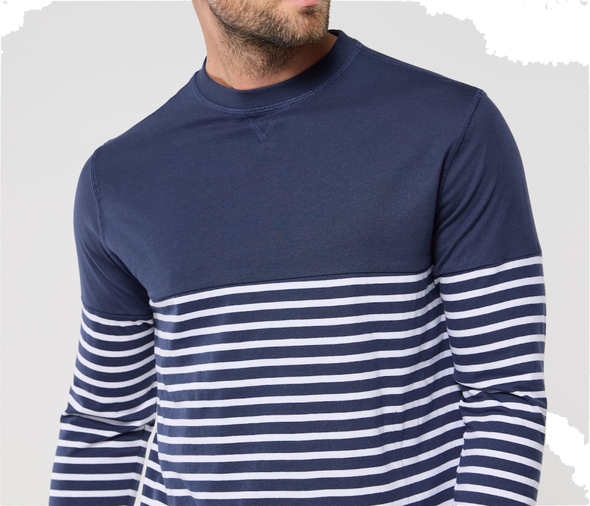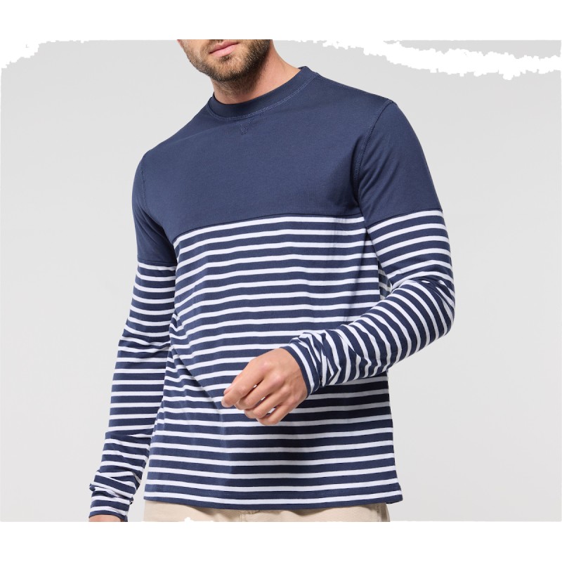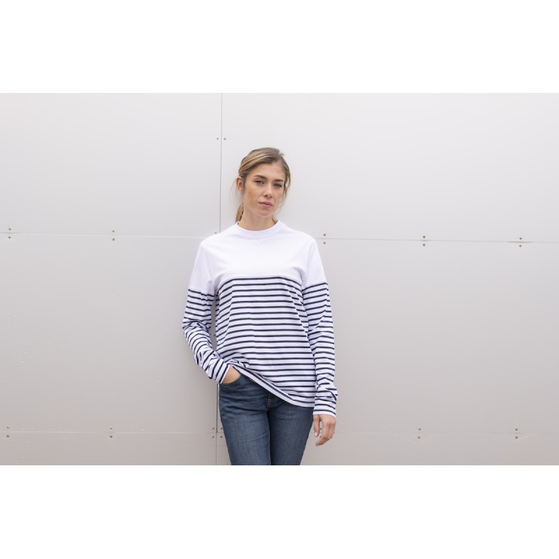 Manches longues et droites. Rayures commençant à 20 cm du col. Col avec élasthanne.