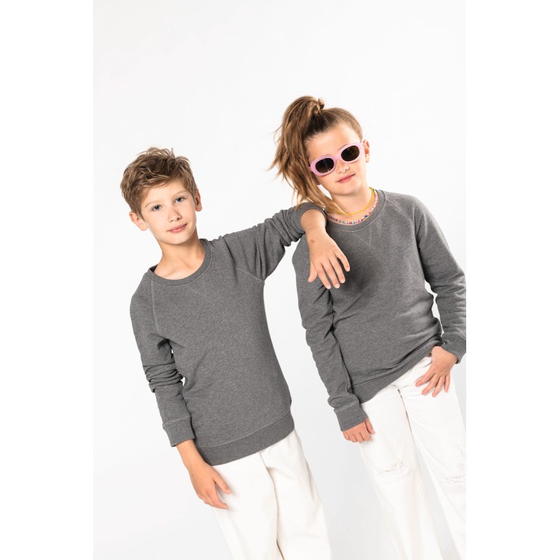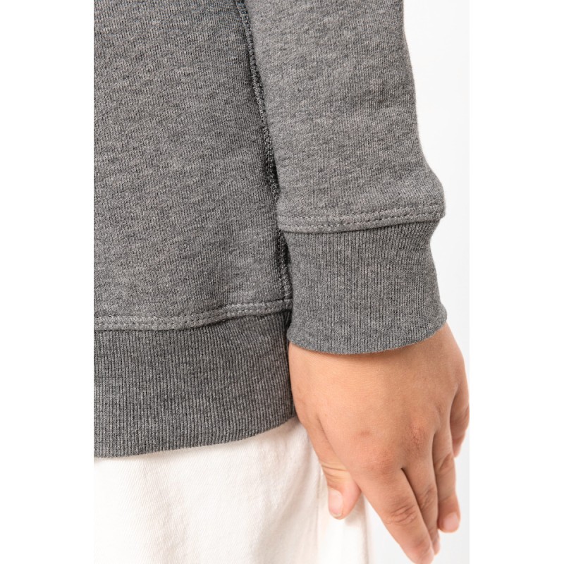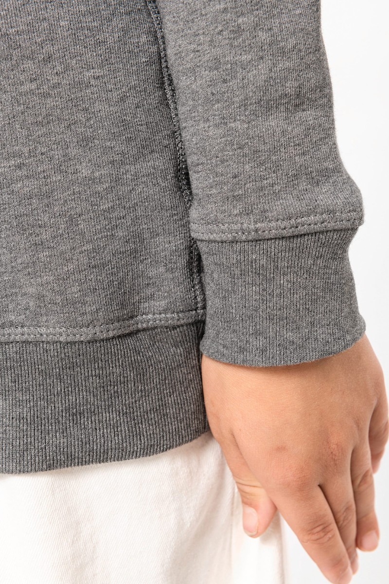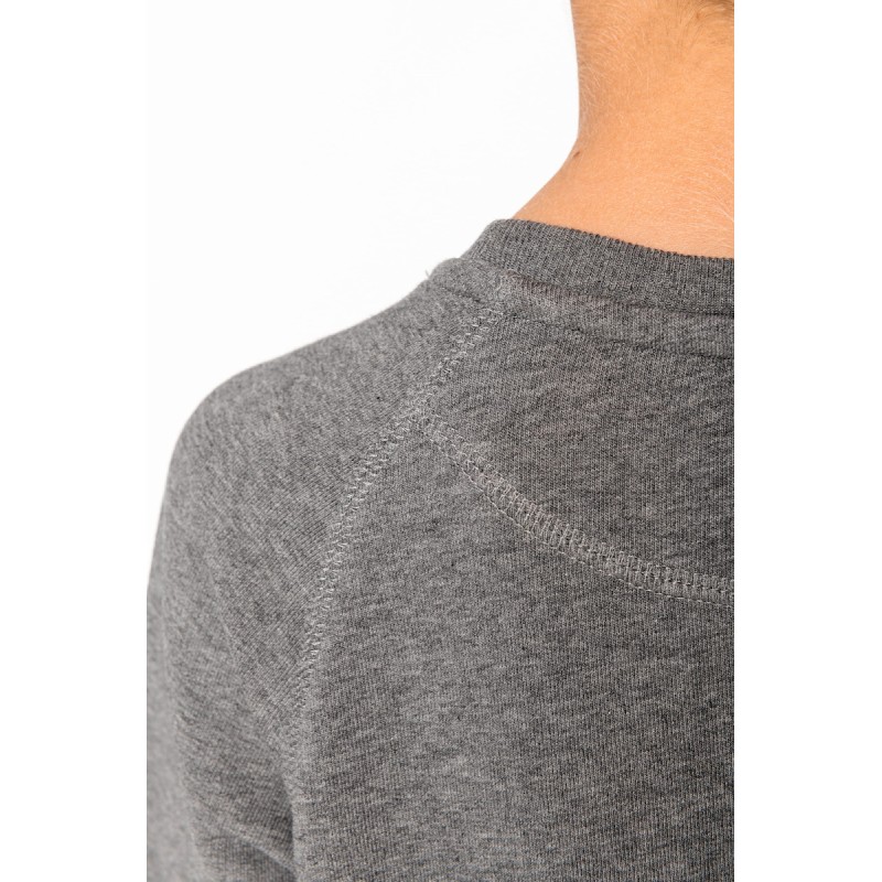 80% coton biologique / 20% polyester. Molleton non gratté (French Terry). LST (Low Shrinkage Terry). Bord-côte col, poignets et bas de vêtement. Bande de propreté chevron intérieur col et application en V à l'encolure. Pas d'étiquette de marque au col, uniquement une puce de taille pour faciliter la personnalisation.