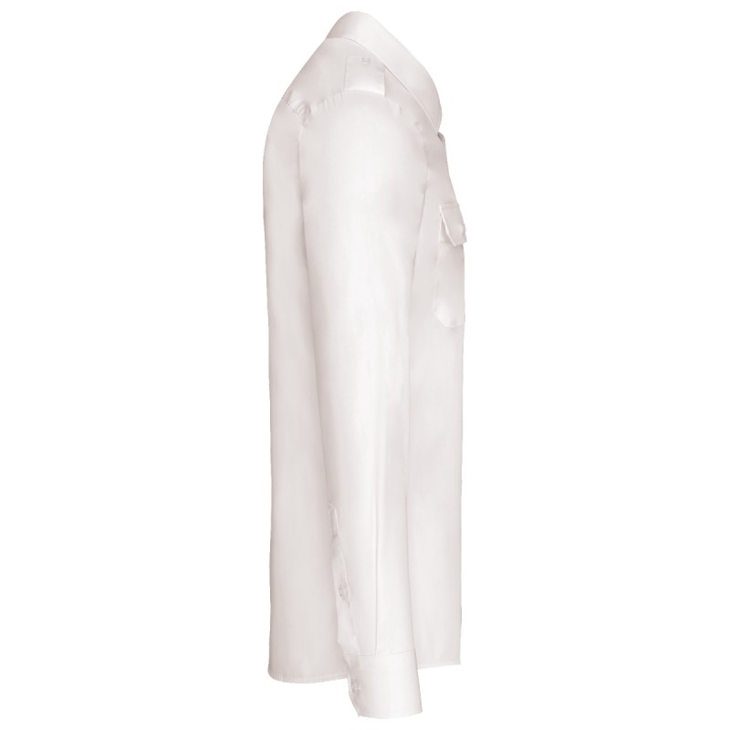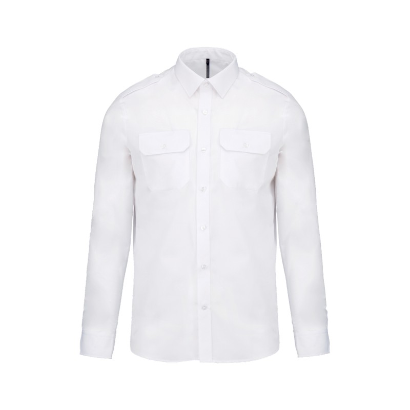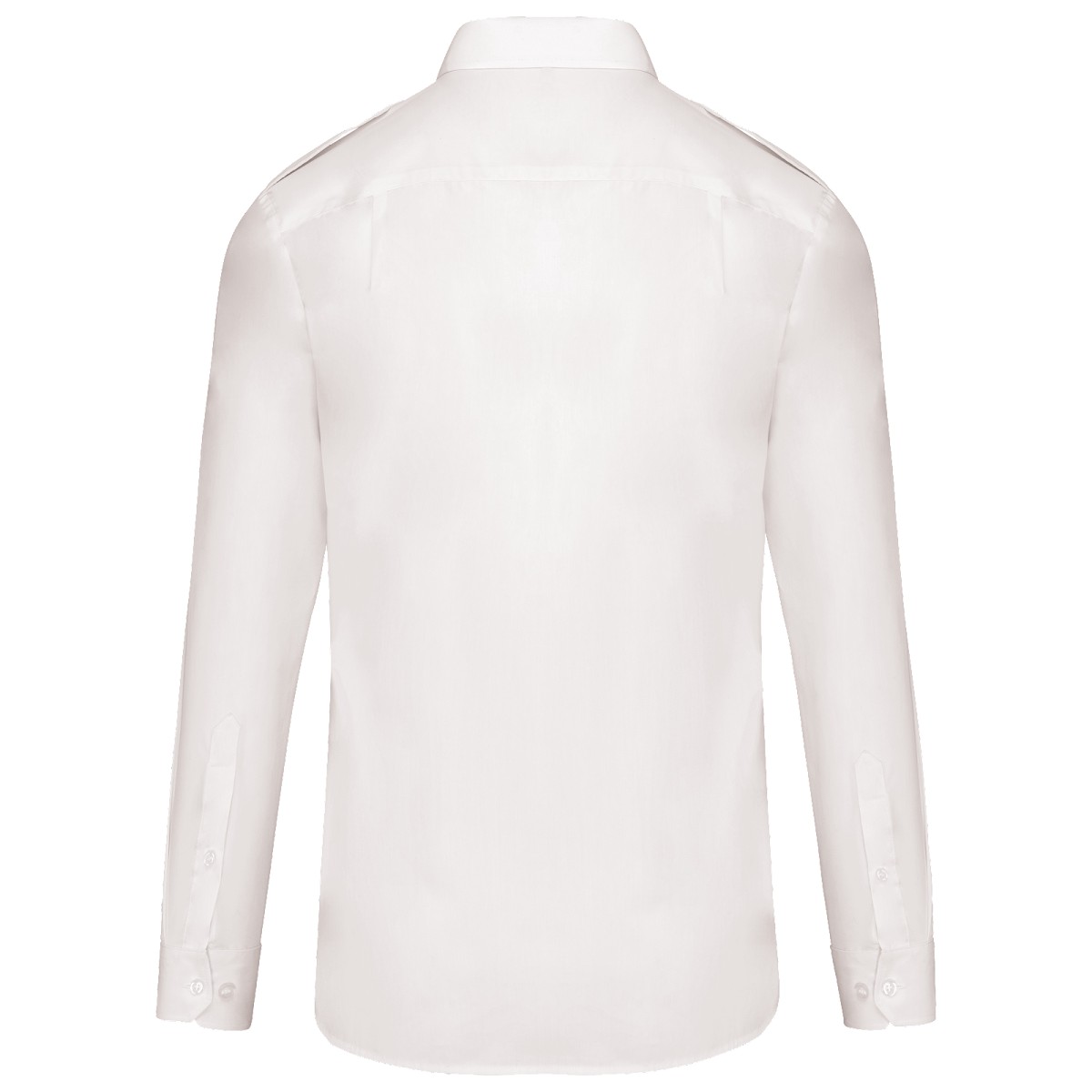 65% polyester / 35% coton. Tissu popeline. Entretien facile (traitement Easy Care). Boutons ton sur ton. 2 poches poitrine à rabat dont une avec emplacement stylo côté coeur. Plis d'aisance au dos. Patte boutonnée sur les épaules pour la pose de galons (galons non fournis). Poignets boutonnés réglables.