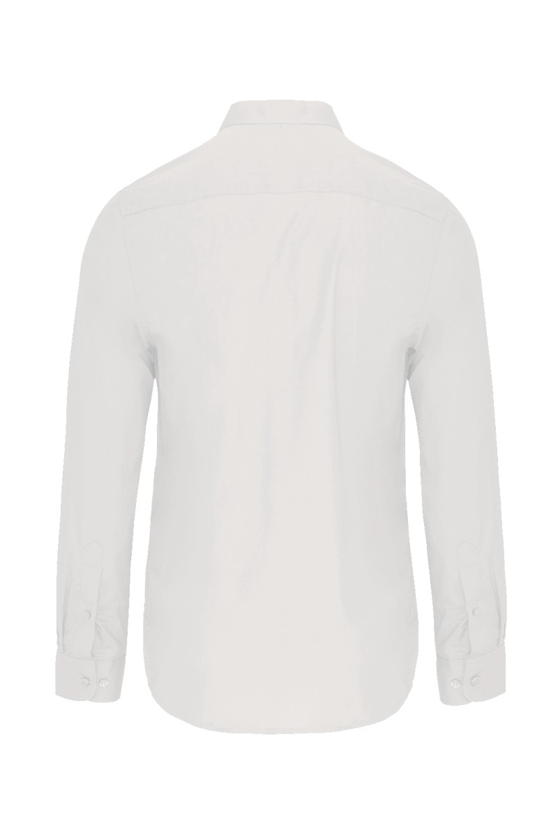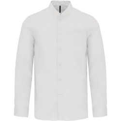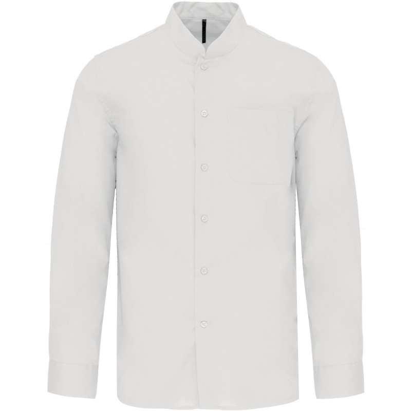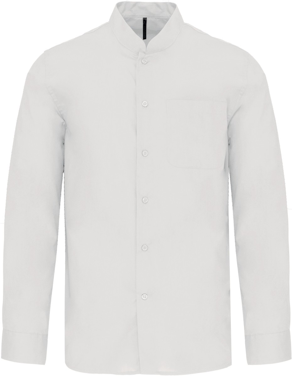 65% polyester / 35% coton popeline. Entretien facile. Col mao non boutonné. Boutons ton sur ton. Poche poitrine côté gauche à angle arrondi. Poignet réglable à angles arrondis avec patte capucin. 2 boutons de rappel.