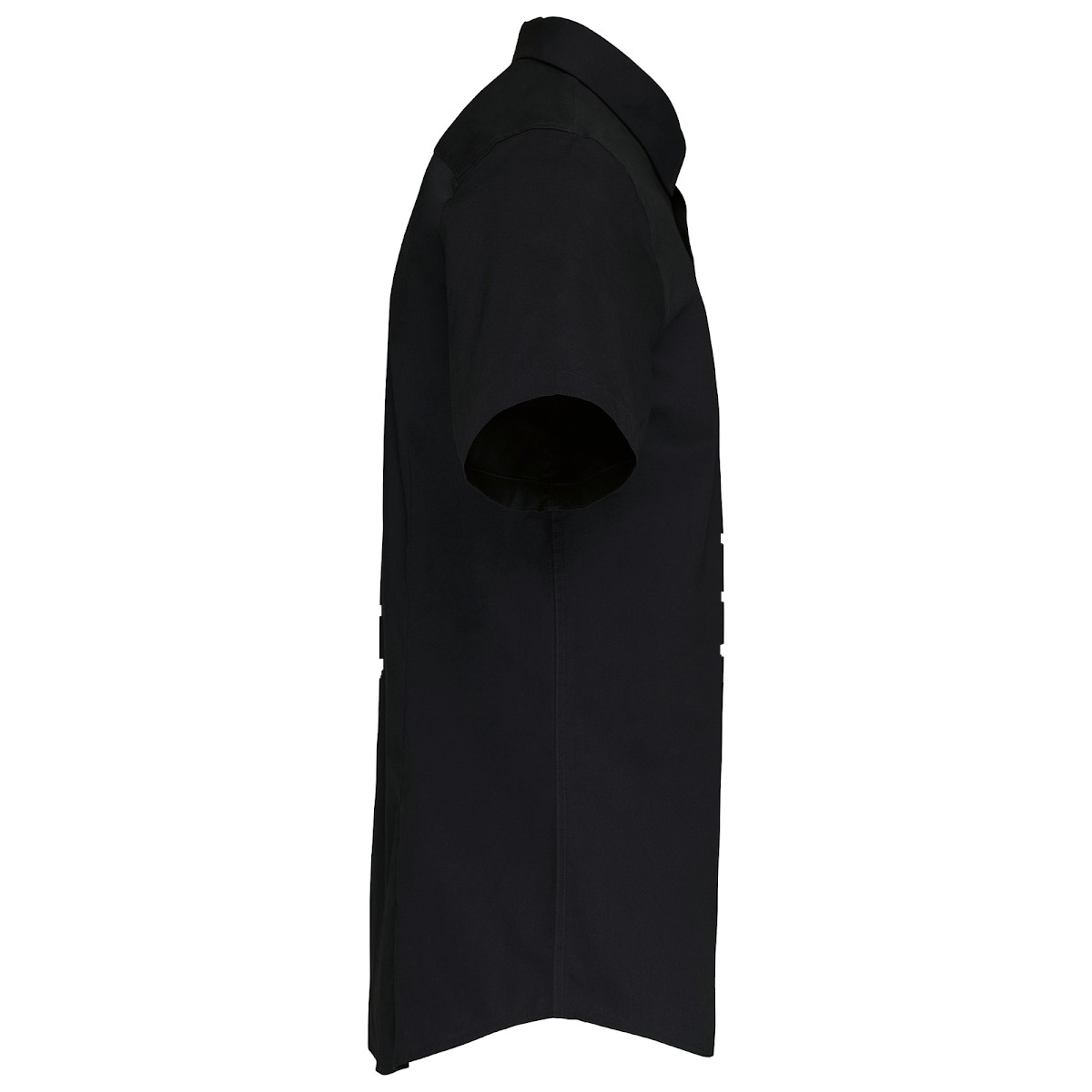 97% coton / 3% élasthanne. Aisance et ajustement idéal de par son côté stretch. Pointe de col baleinée. Boutons ton sur ton. Empiècement dos double. Pinces taille dos. Finition coutures rabattues. Ourlet bas de manche double rempli. 1 bouton de rappel. Bas arrondi.
