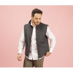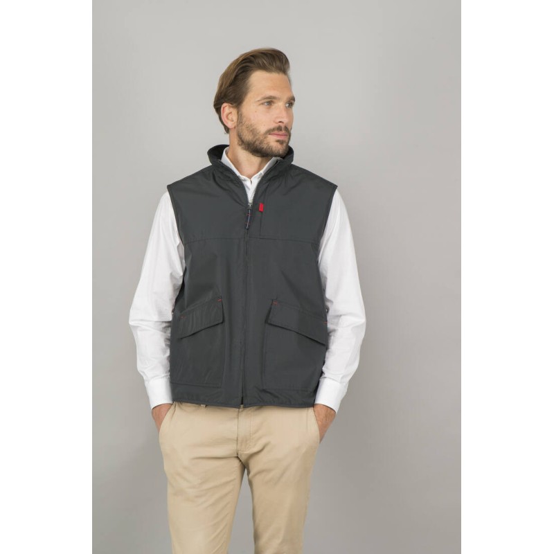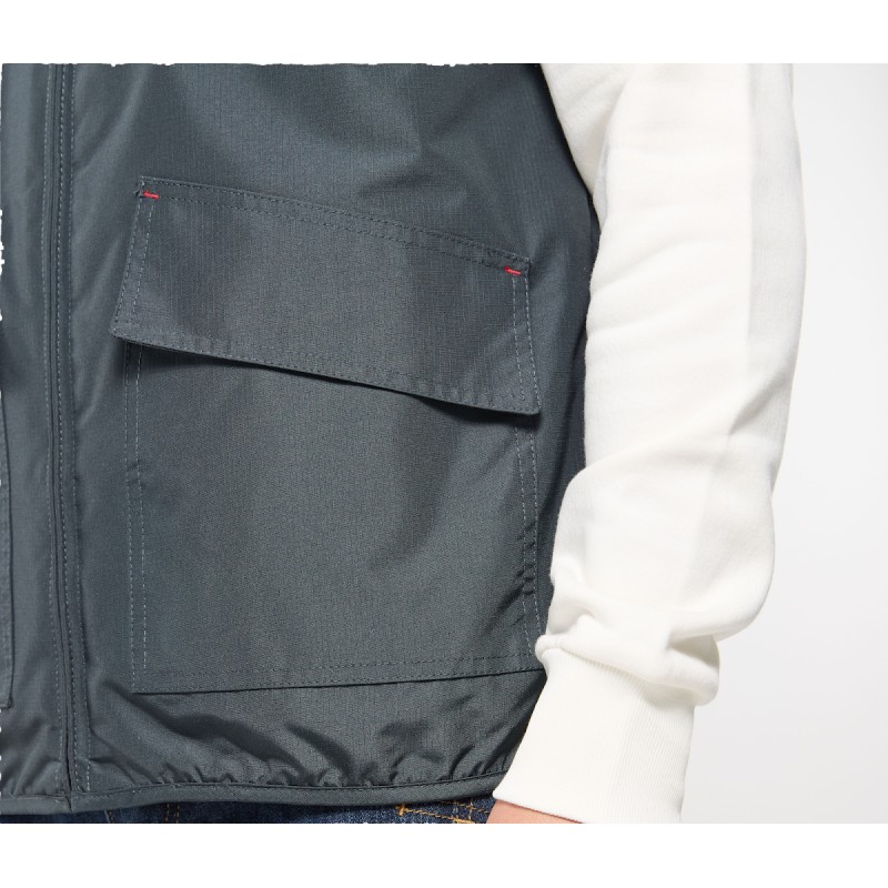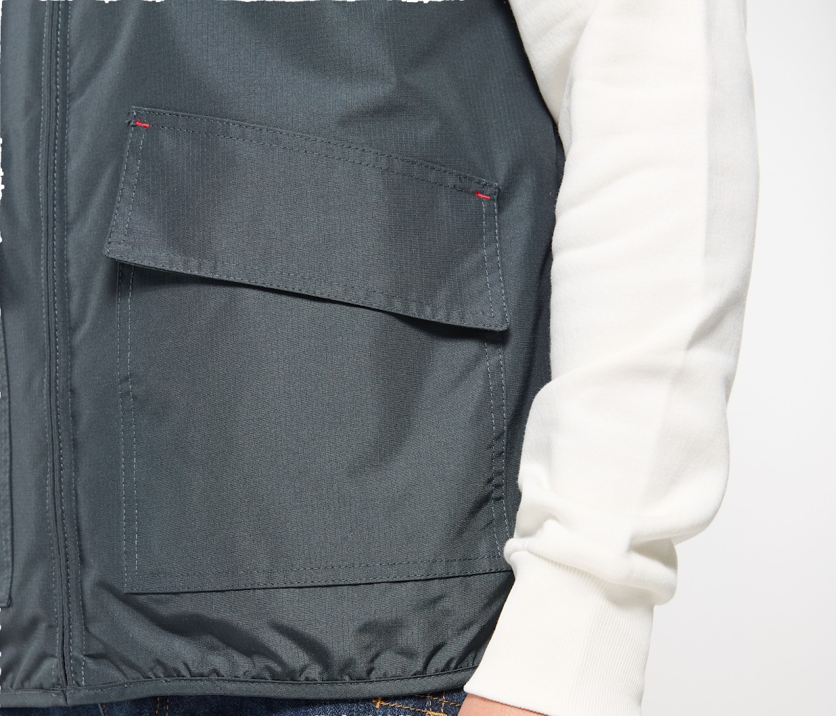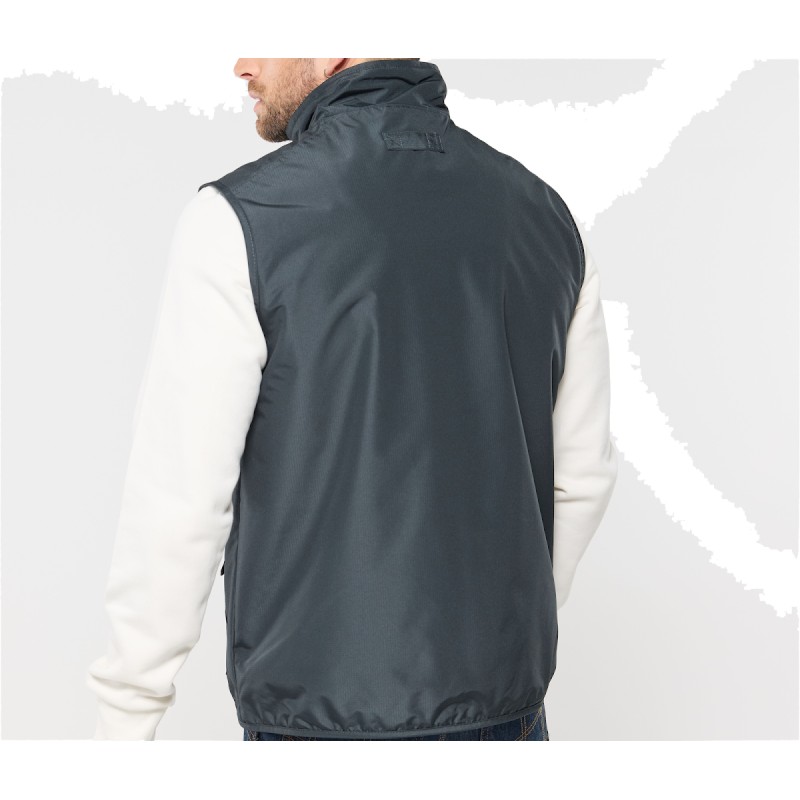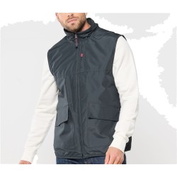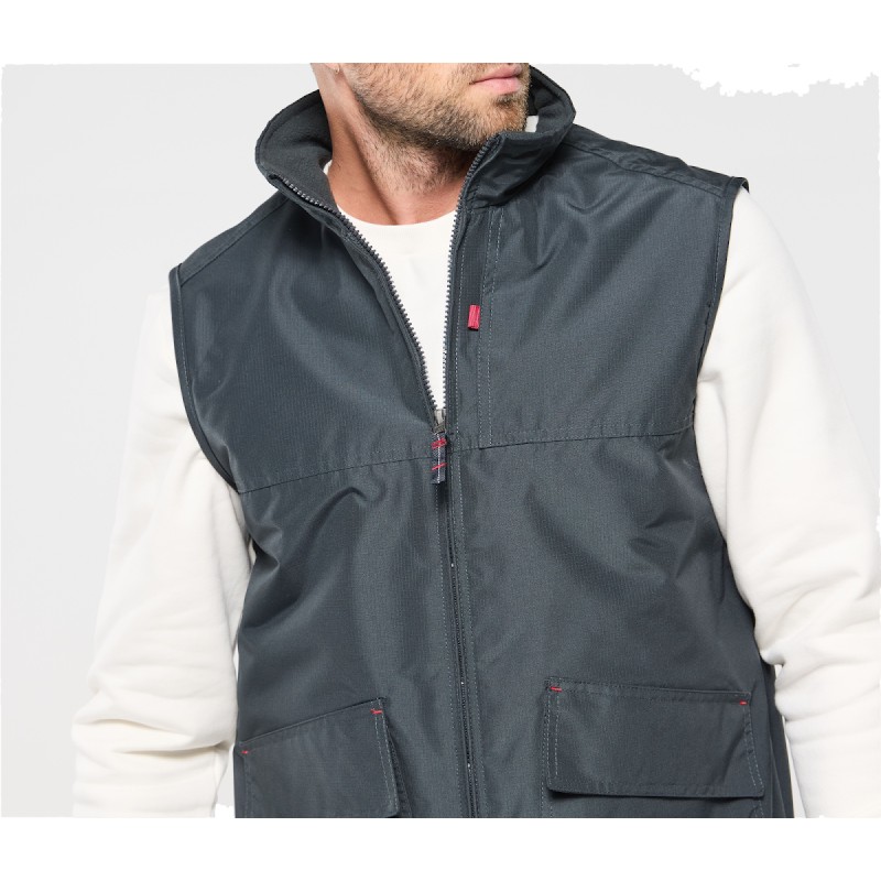 Bodywarmer coupe-vent imperméable et solide. 3 poches avec Velcro®. Doublure polaire.