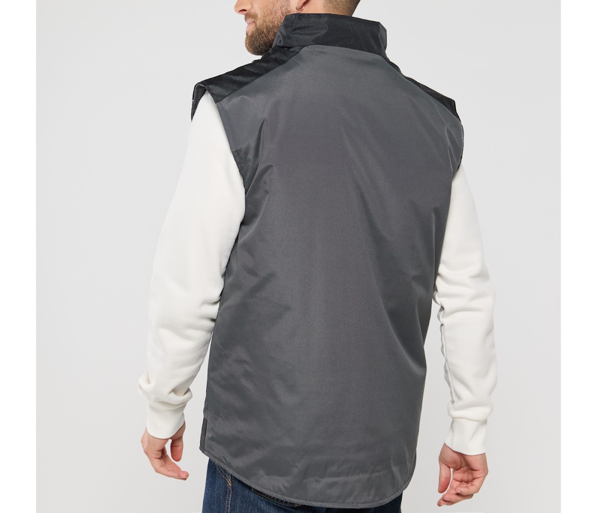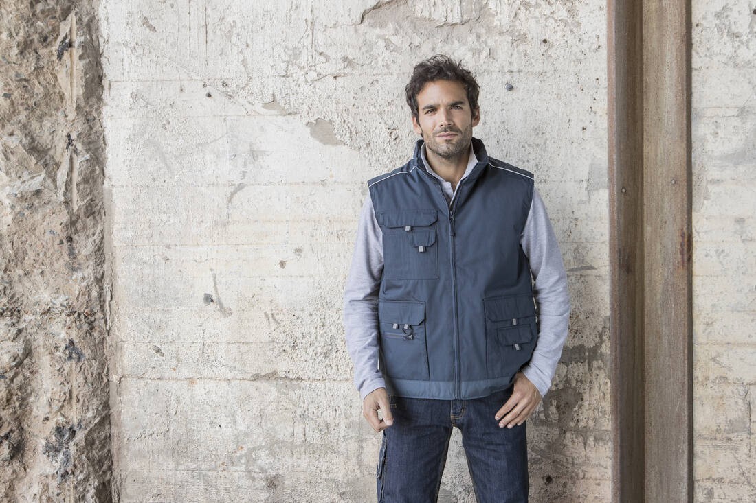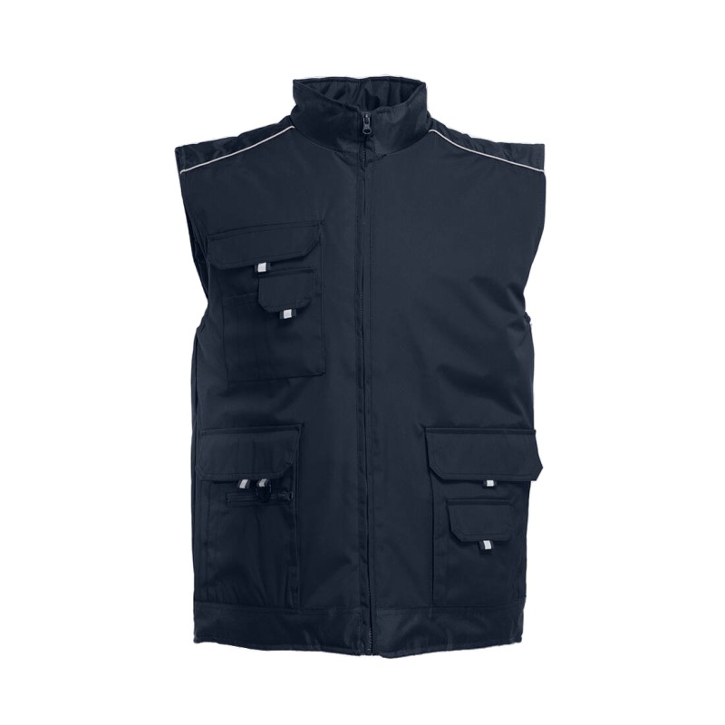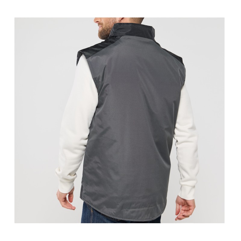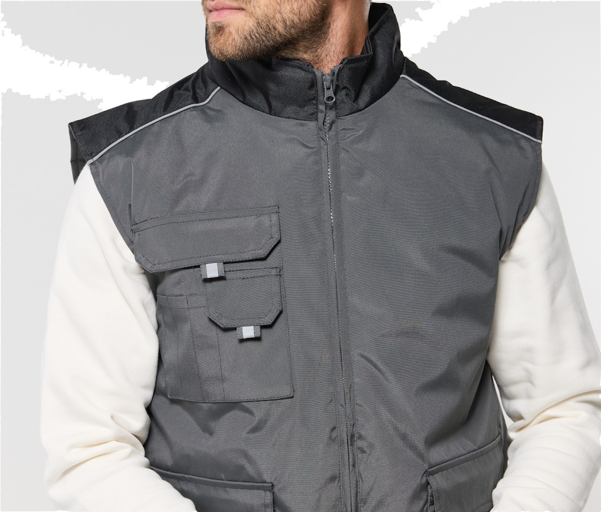 Empiècement épaules, col et partie basse avant en Oxford 330D. 11 poches extérieures. Bandes réfléchissantes épaules et poches.