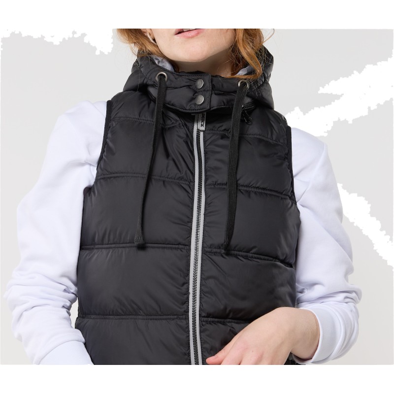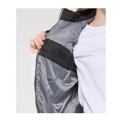 Capuche détachable et ajustable par cordon plat. Déperlant et coupe-vent. Coupe ajustée.