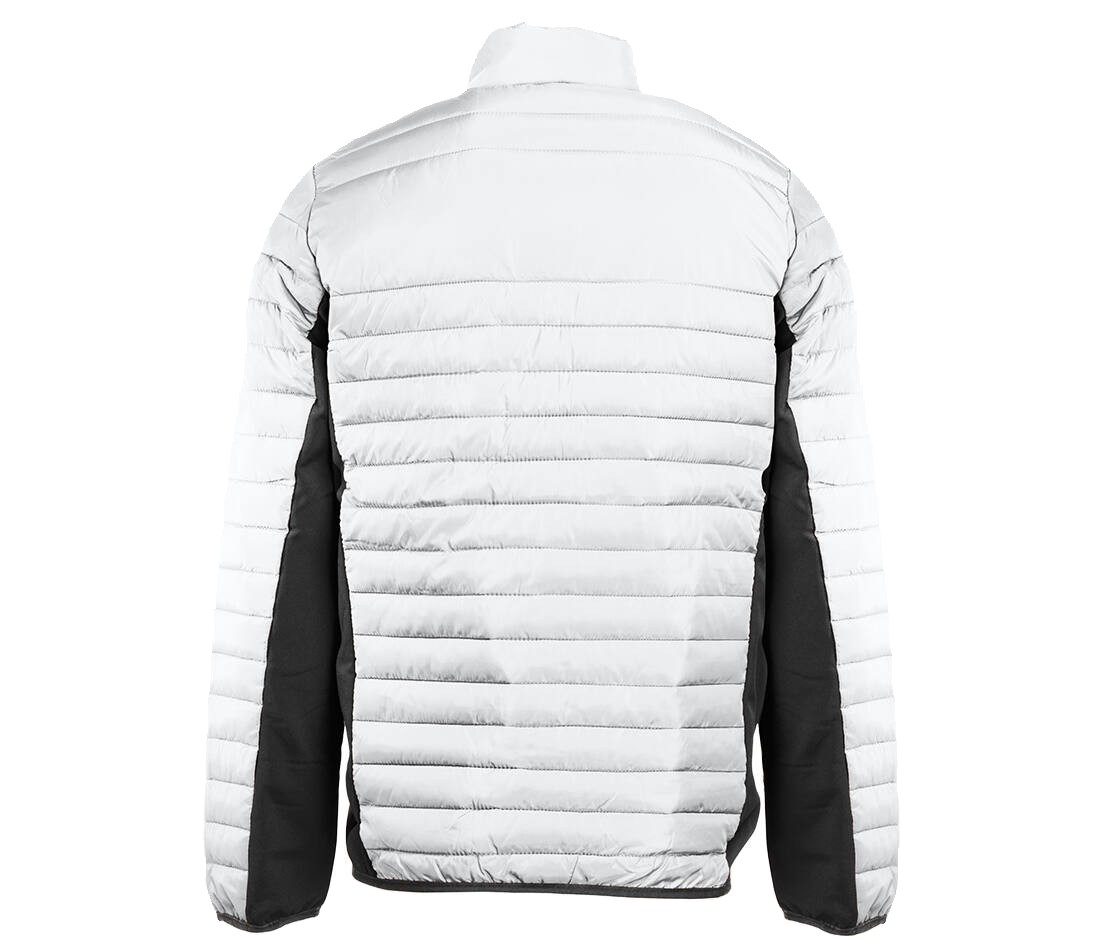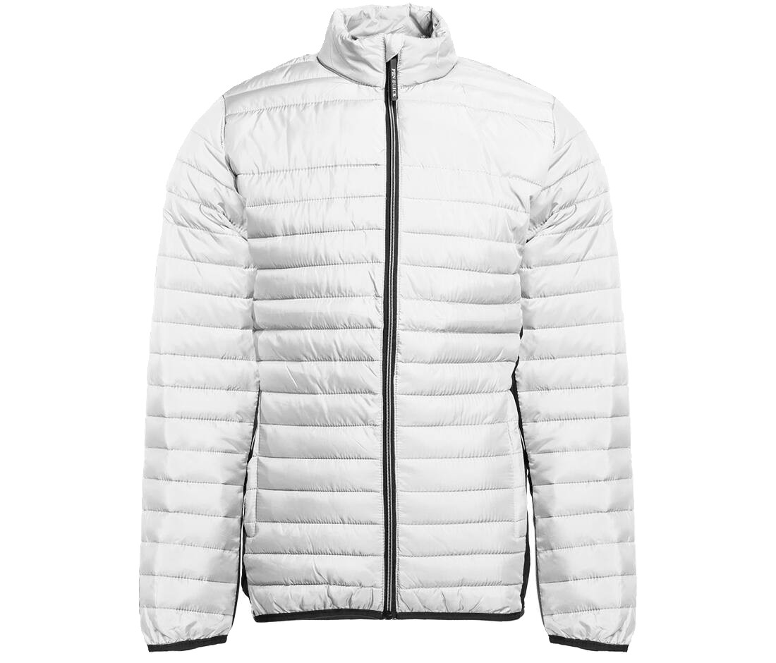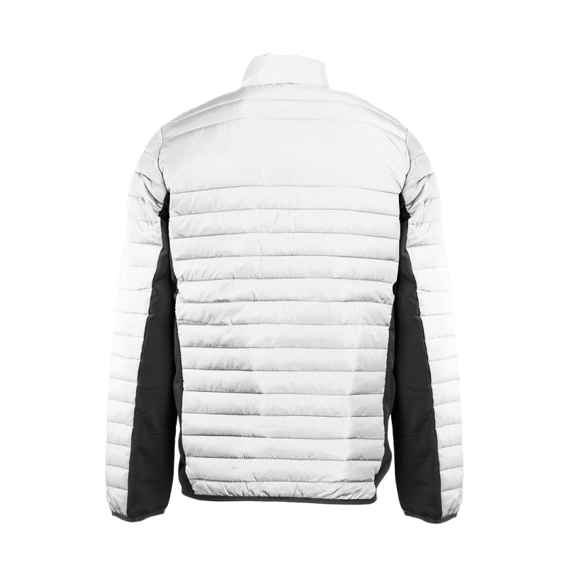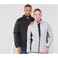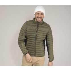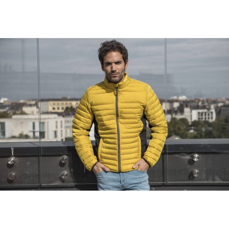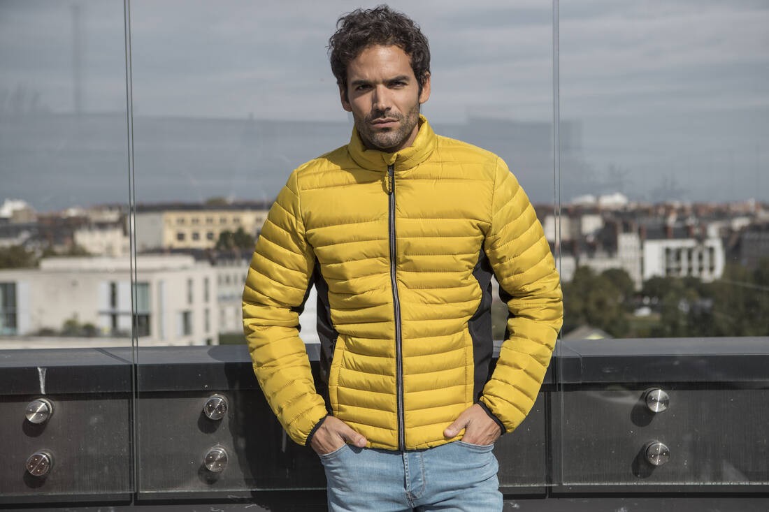 Doudoune légère moderne bi-matière, coupe ajustée. 2 poches latérales zippées et 2 poches intérieures. Zips contrastés.