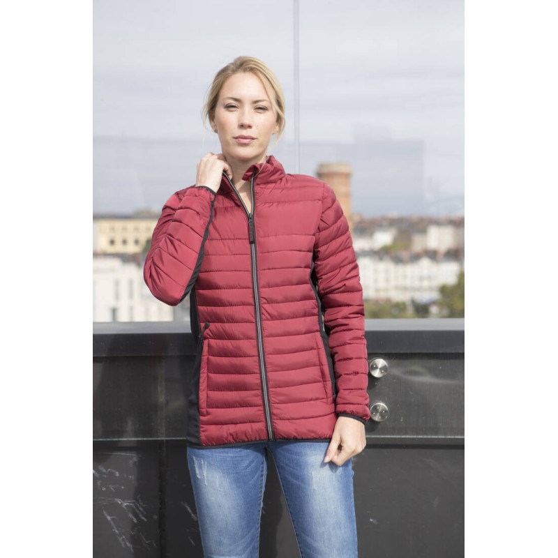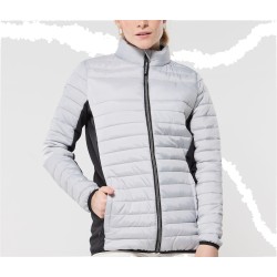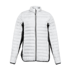 Doudoune légère moderne bi-matière, coupe ajustée. 2 poches latérales zippées et 2 poches intérieures. Zips contrastés.