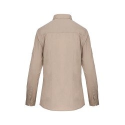 100% coton. Tissu popeline. Col non boutonné. 2 poches plaquées avec rabat devant. Poignets réglables avec patte de manche capucin boutonnée. Manches retroussables à l'aide d'une patte boutonnée. Chemise lavée. Ce produit a subi un traitement spécial et présente un aspect volontairement vieilli. Ce procédé de fabrication implique des variations de couleurs d'un produit à l'autre et rend chaque pièce unique.