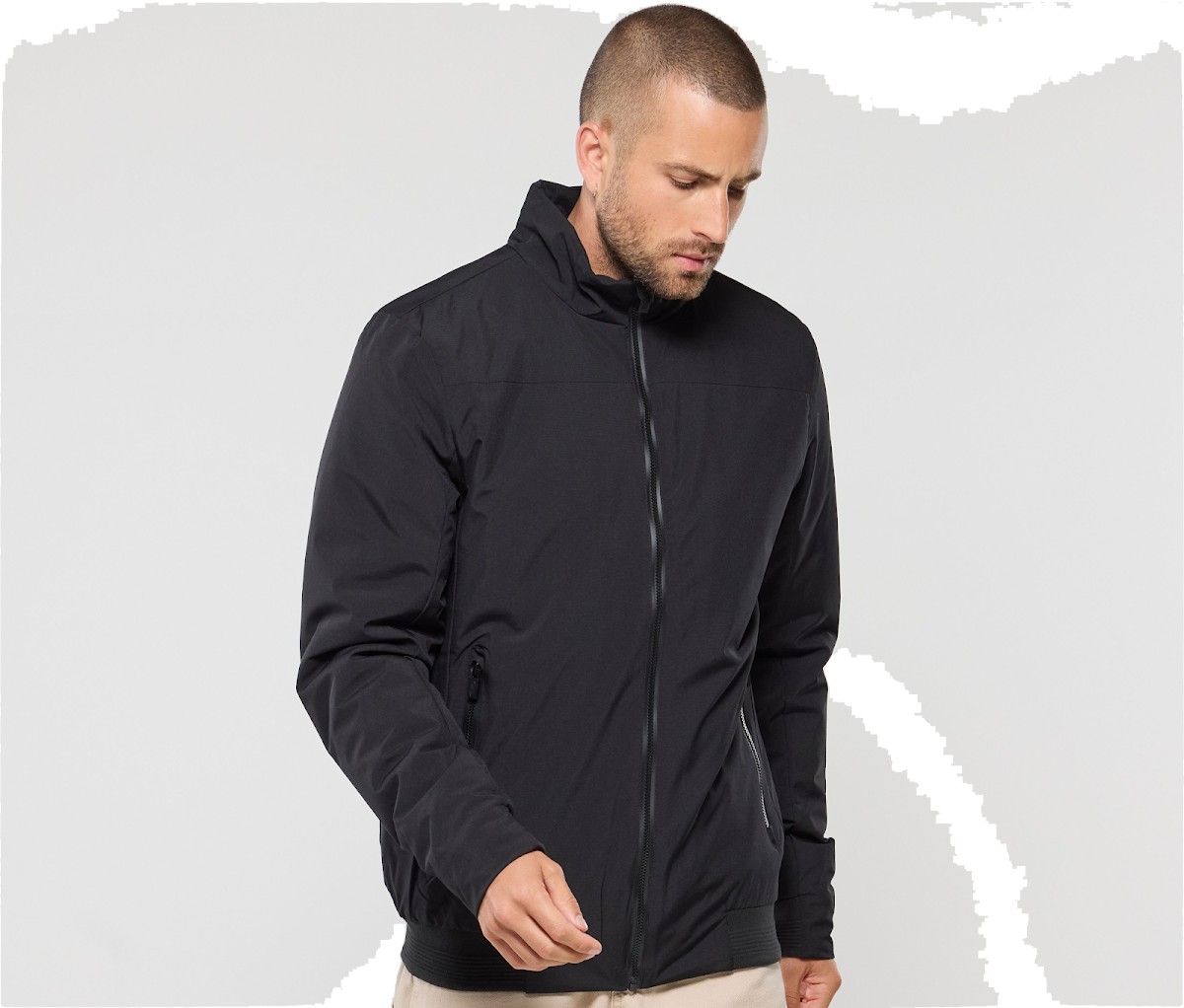 Doublure en polyester recyclé. Blouson léger imperméable. Fermetures Éclair® imperméables. Bord côte élastiqué aux manches et au bas du blouson. Imperméabilité : 4000-5000mm.