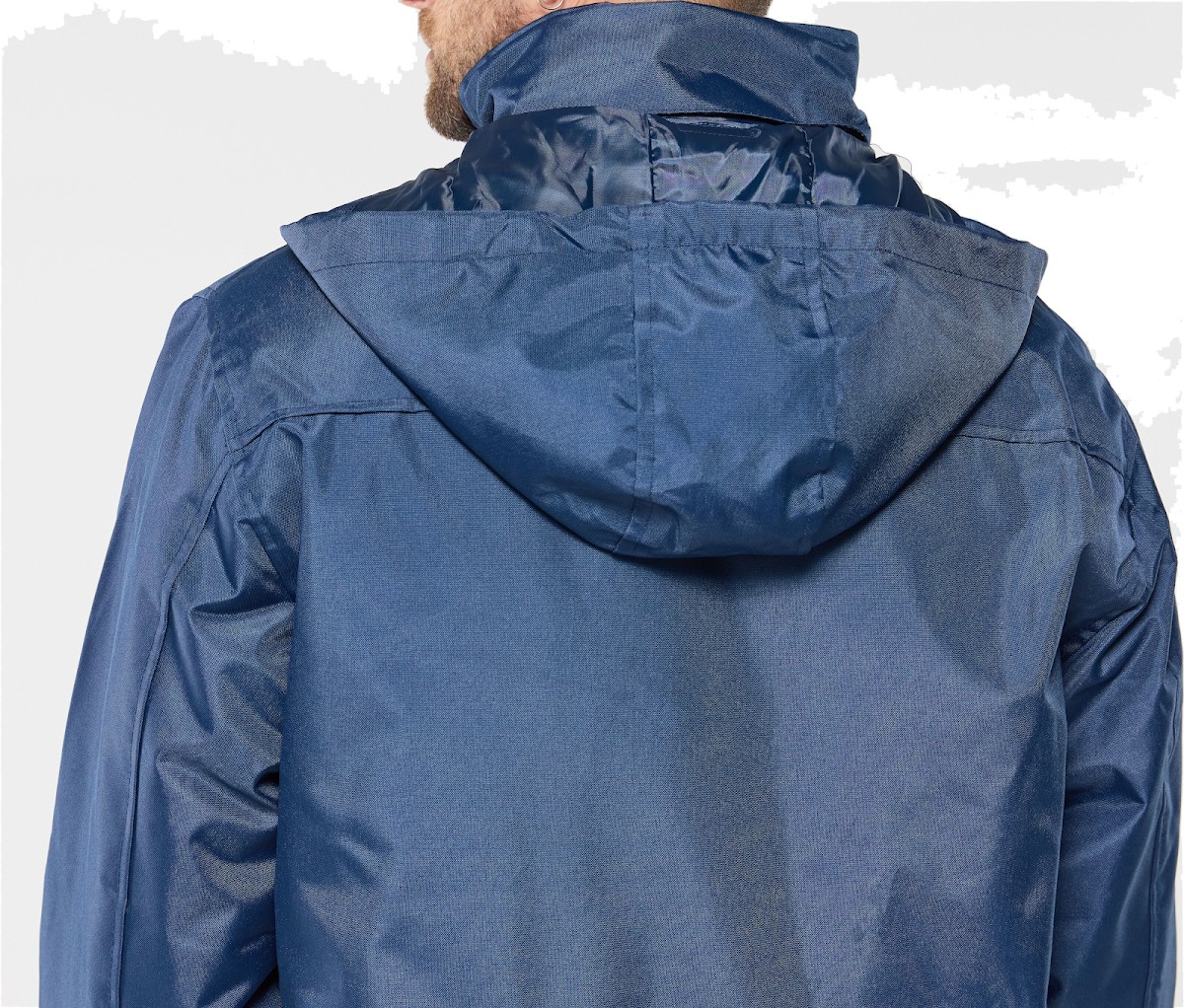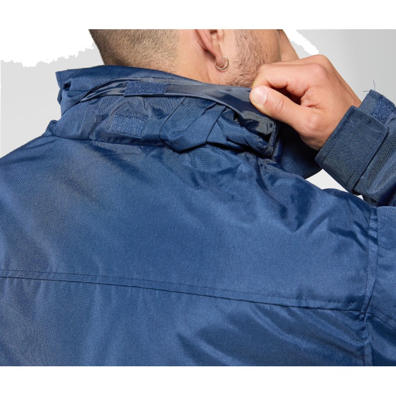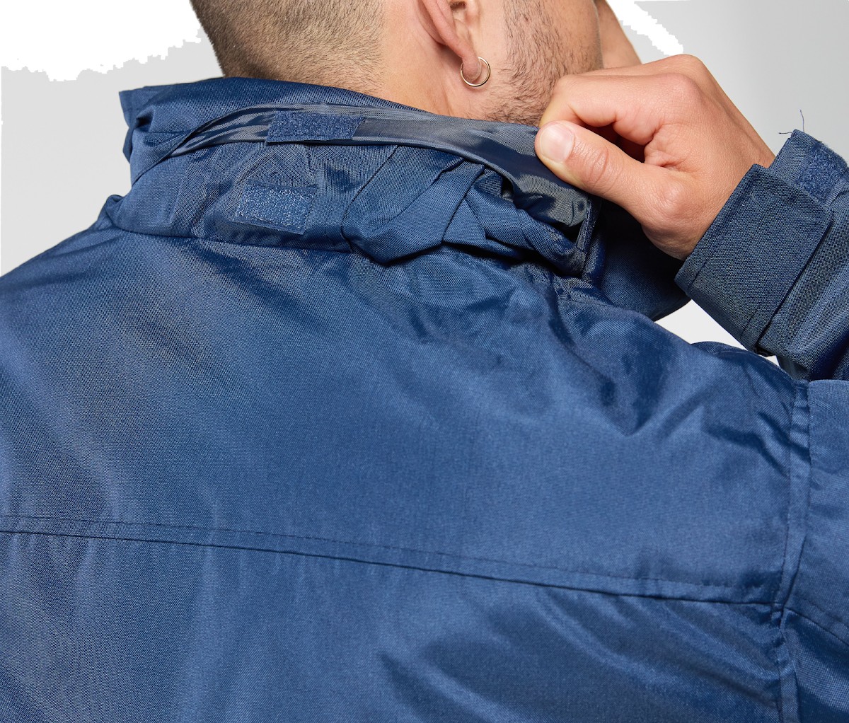Coupe-vent et imperméable 1000mm. Capuche dans le col, ajustable par stopper. Coupe ajustée.