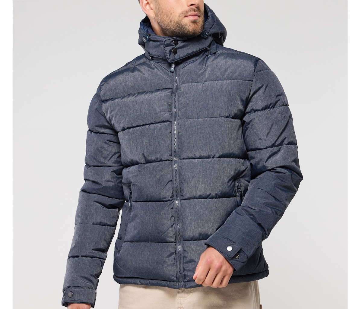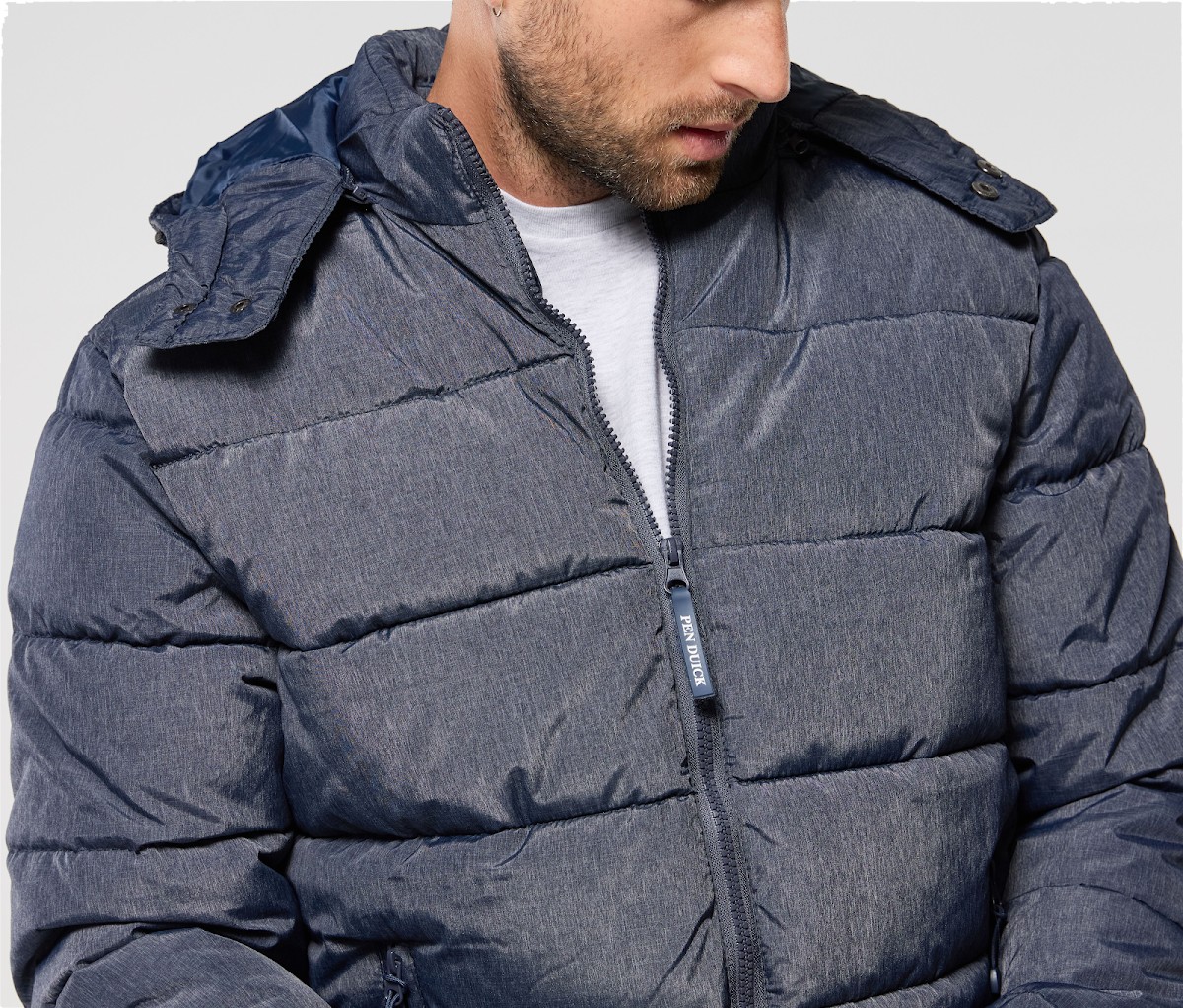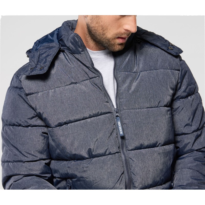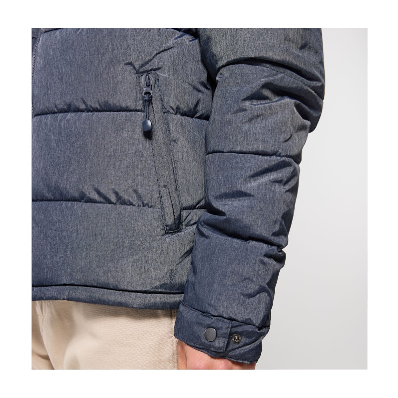 Capuche amovible. 2 poches zippées sur les côtés et 2 poches intérieures (1 zippée et 1 Velcro®). Accès marquage au dos.
