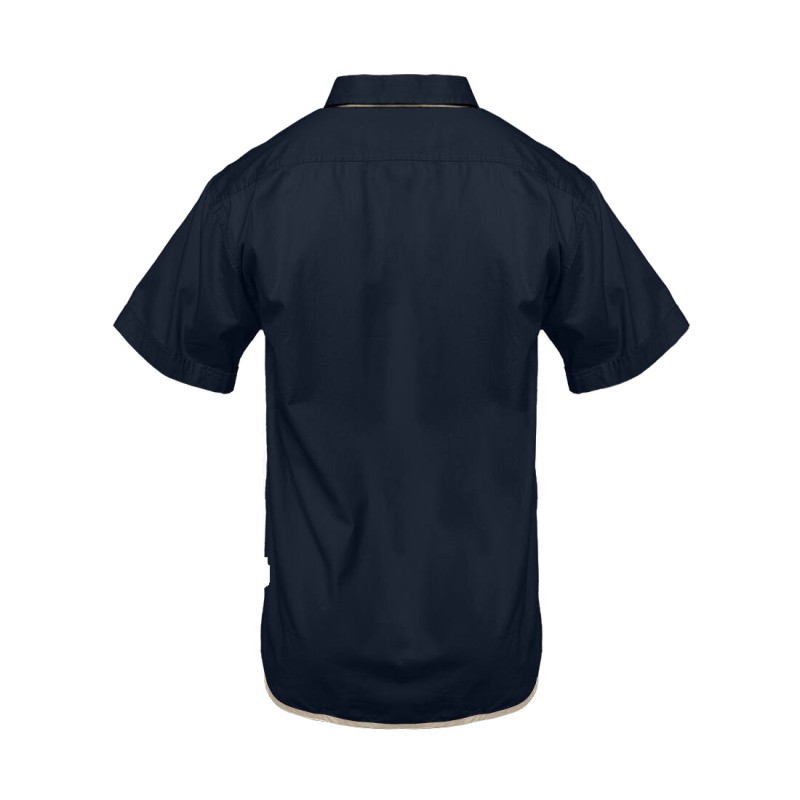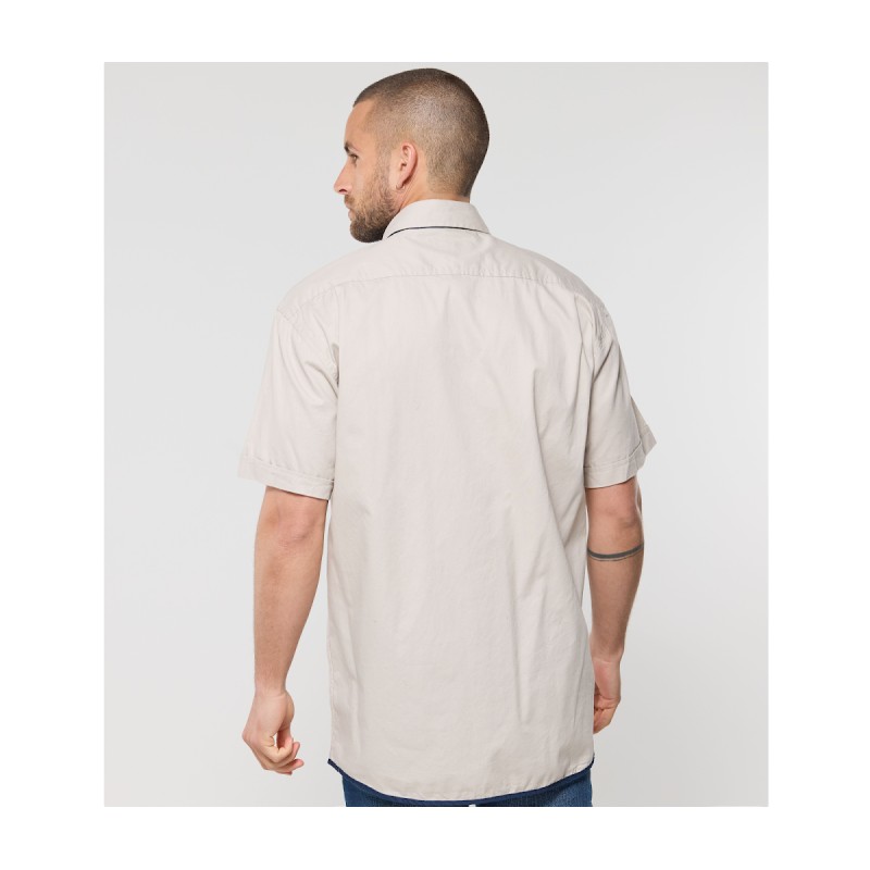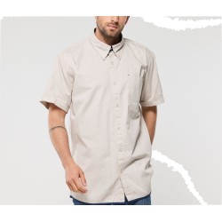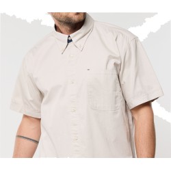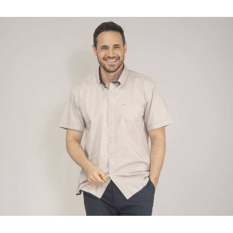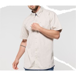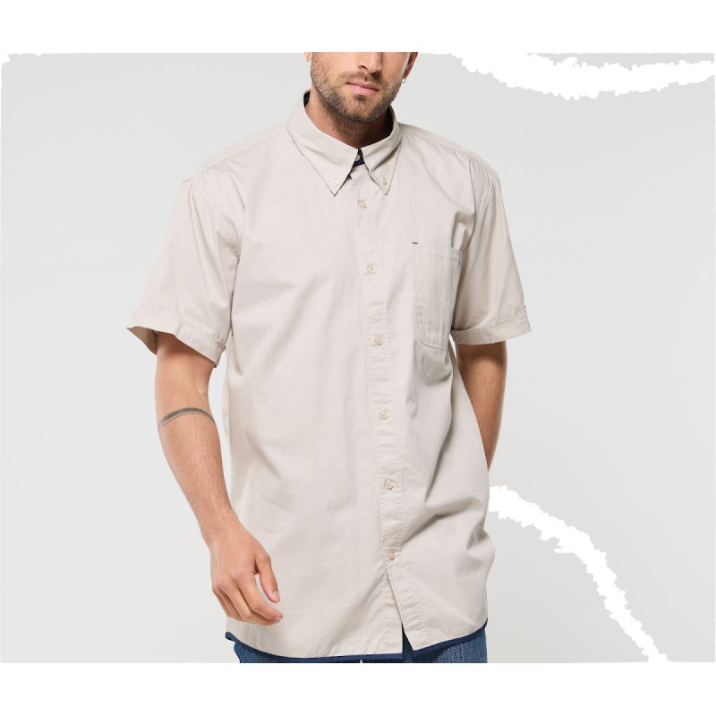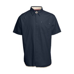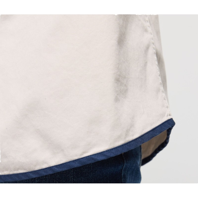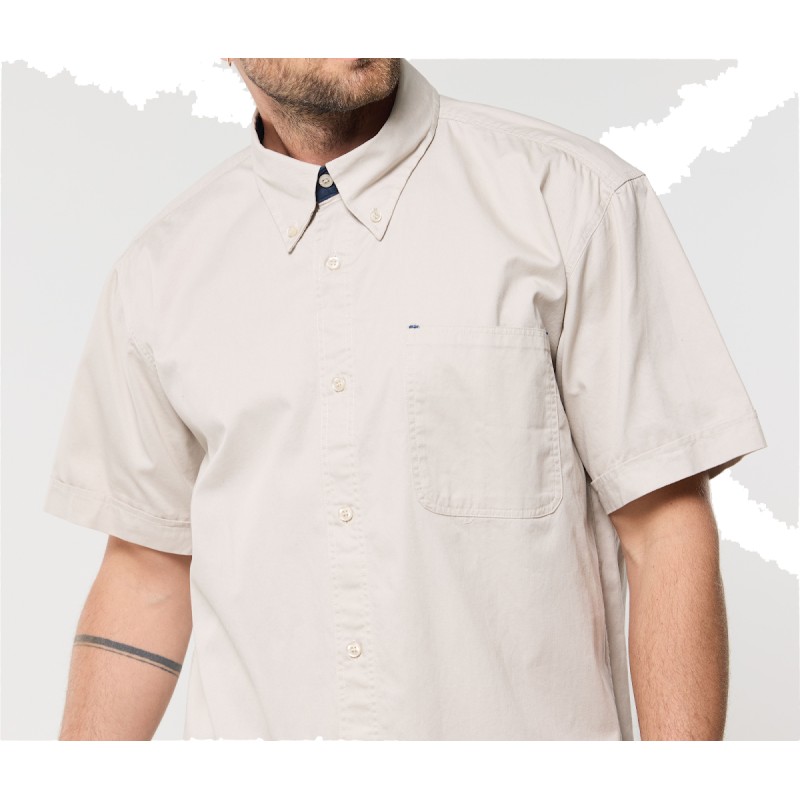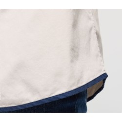 Poche poitrine. Intérieur col contrasté. Col boutonné.