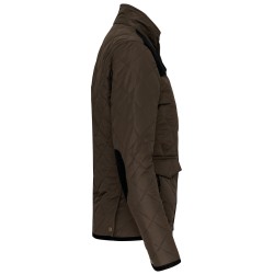 Extérieur : 100% polyester pongé. Intérieur : 100% polyester taffetas. Fermeture zippée cachée par patte pressionnée. 2 double poches devant avec rabat pressionné. 1 poche intérieure. Empiècement pressionné sur l'épaule. Finitions bas de manches et de vêtement, coudières, intérieur col et dessous du rabat de poche en velours côtelé. 2 fentes d'aisance pressionnées au bas du dos. Boutons pression au poignet.