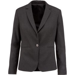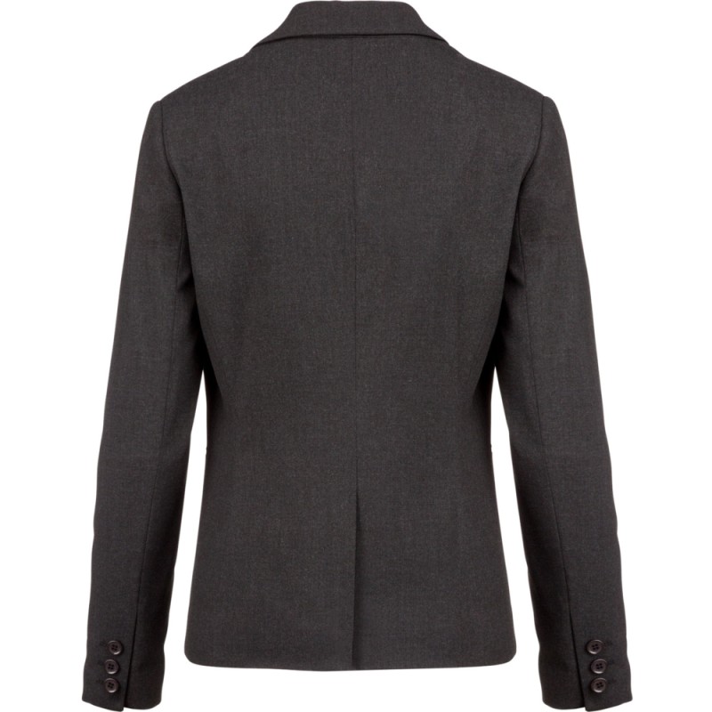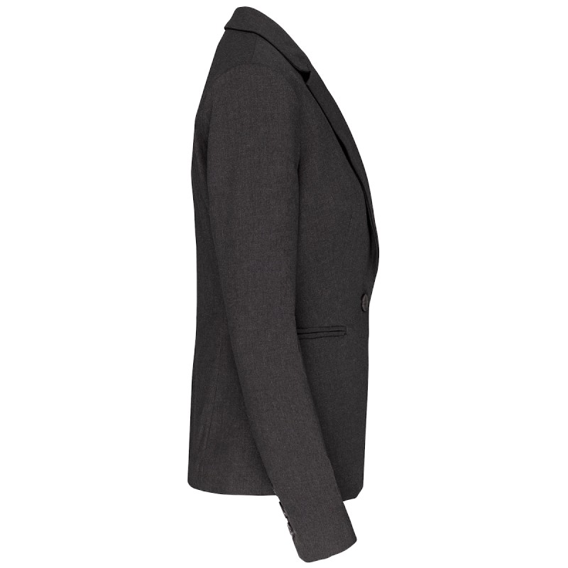 64% polyester / 34% viscose / 2% élasthanne. Doublure 100% polyester taffetas. Veste 1 bouton. 2 poches passepoilées devant. 2 poches intérieures boutonnées. Bas de manches avec 3 boutons. 1 fente d'aisance au dos.