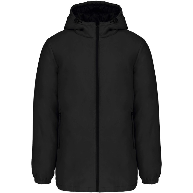 100% polyester recyclé post-consumer. Tissu déperlant. Finition peau de pêche pour un toucher plus doux. Doublure polyester taffeta 210T noire. Intérieur matelassé 100% polyester. Coupe confort. Fermeture zippée nylon et tire-zip métal. Capuche 3 panneaux doublée polyester avec cordon de serrage et stoppeurs. 2 poches devant zippées. 1 poche intérieure avec fermeture par bande auto-agrippante. Bas de manches élastiqué. Dos rallongé pour plus de confort. Patch tissu intérieur col pour la personnalisation. Zip invisible côté cœur et bas de vêtement pour accès personnalisation. Pas d'étiquette de marque pour faciliter la personnalisation.