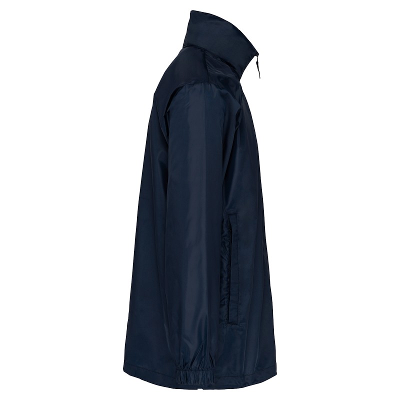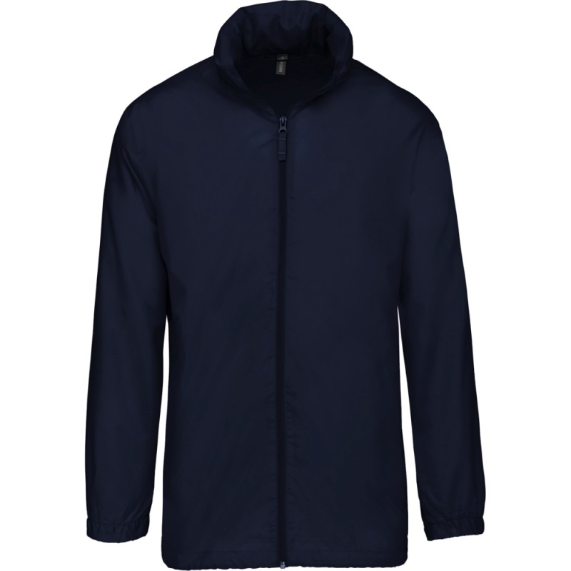 100% polyester. Capuche dans le col avec patte auto-agrippante. 2 poches zippées devant. Cordon de serrage au bas. Bas de manches élastiqués. Repliable dans sa poche sur la base du système K-WAY®. Fermeture zippée ton sur ton.