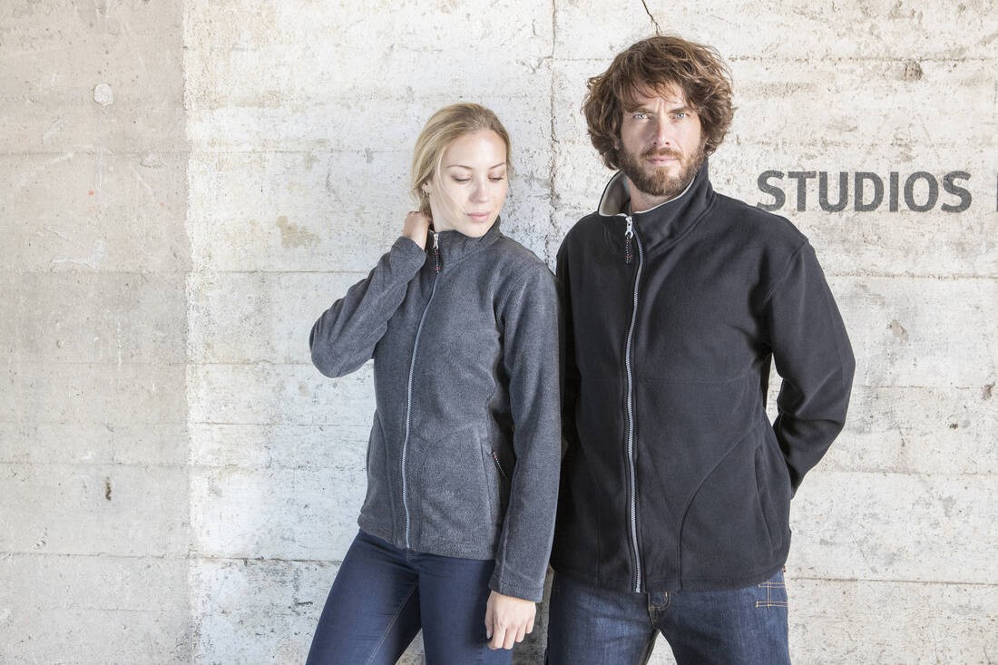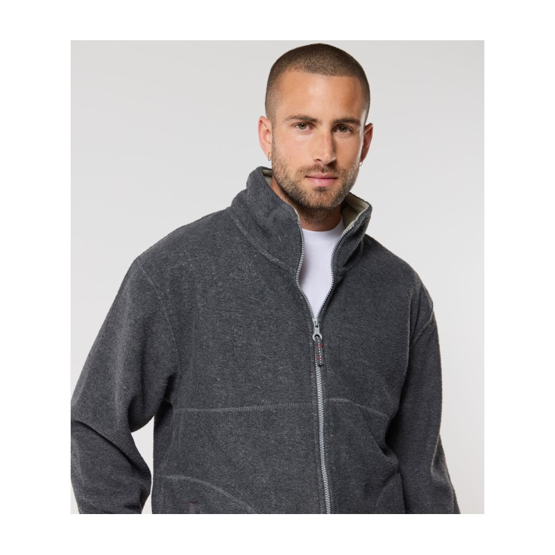 Anti-peluche. Demi-lune et bande de propreté en twill. 2 poches latérales zippées.