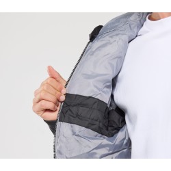 Déperlante et coupe-vent. 2 poches latérales avec tirette et 2 poches intérieures (1 avec Velcro® et 1 zippée). Coupe ajustée.