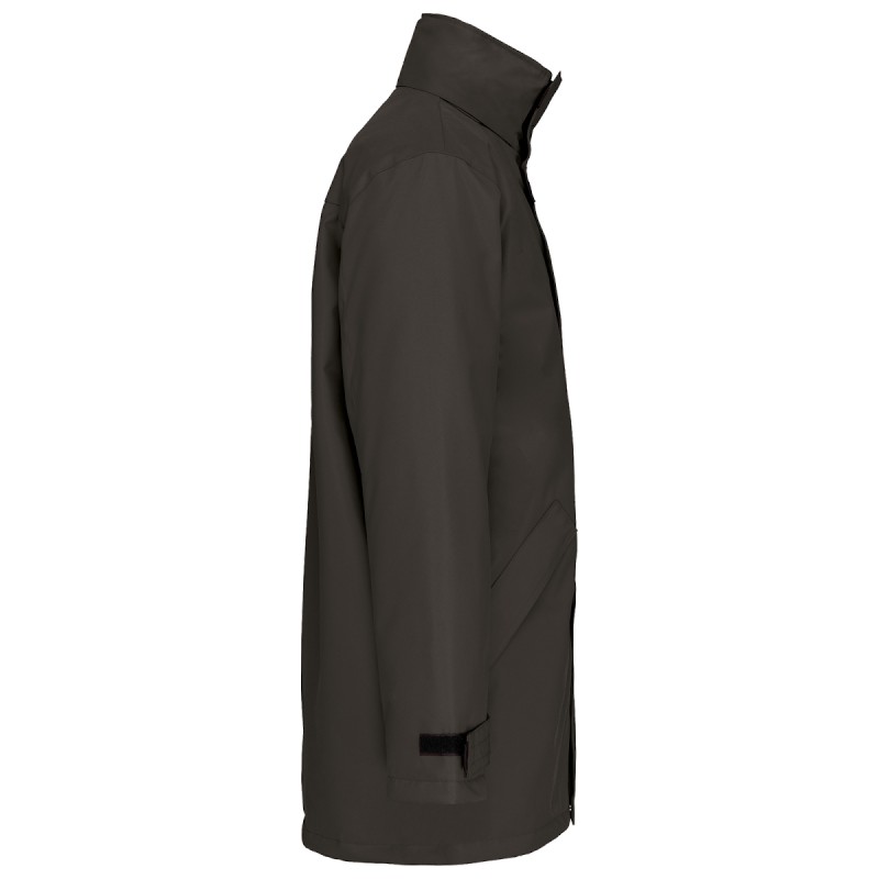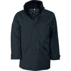 Extérieur : 100% polyester Oxford. Intérieur : polyester matelassé. Fermeture zippée avec patte auto-agrippante et pressions invisibles. 2 poches extérieures zippées. 2 poches intérieures dont 1 poche pour téléphone portable. Capuche dans le col. Col doublé polaire. Zip pour personnalisation.
