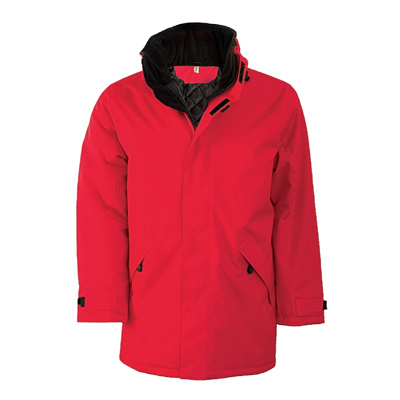 Extérieur : 100% polyester Oxford. Doublure : 100% polyester matelassé. Fermeture zippée et patte de boutonnage à pressions et auto-agrippante. 2 poches latérales zippées. 2 poches intérieures dont 1 pour téléphone portable. Capuche dans le col doublé polaire. Zip intérieur pour personnalisation.