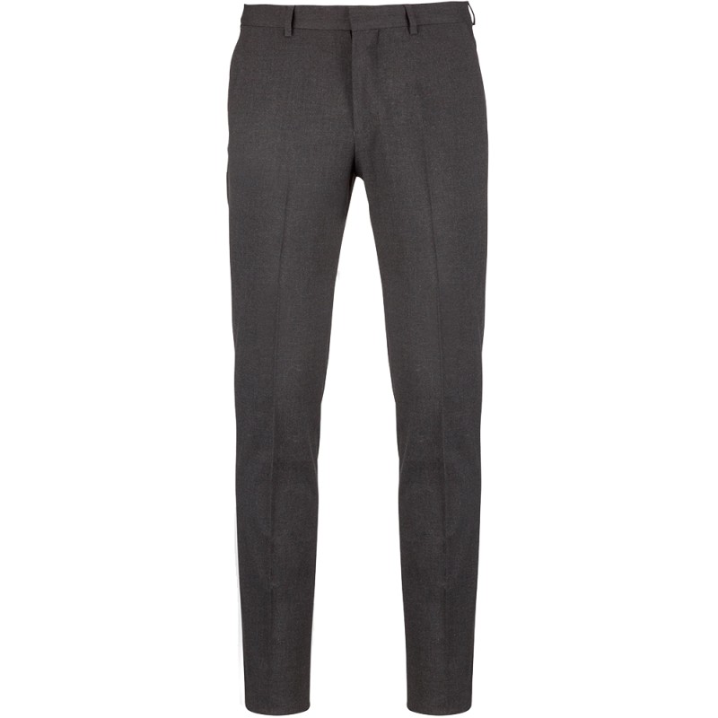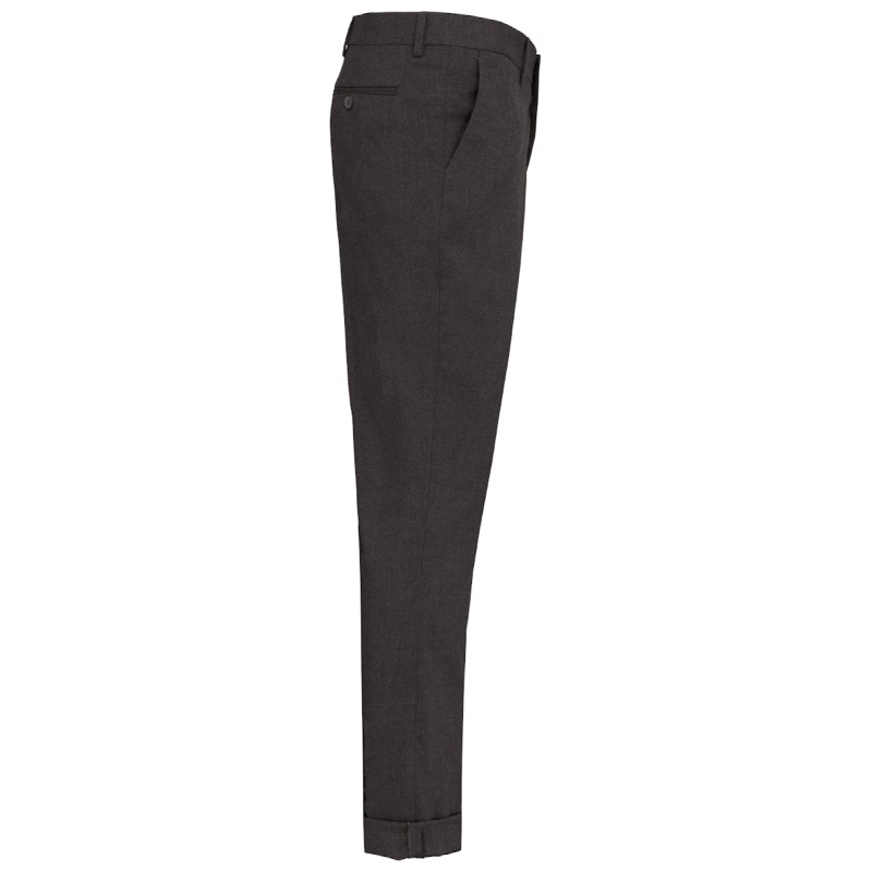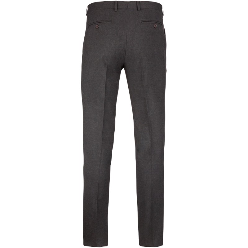 64% polyester / 34% viscose / 2% élasthanne. Pantalon coupe ajustée. 2 poches italiennes devant et 2 poches arrière passepoilées et boutonnées. Fermeture braguette zippée avec crochet et bouton sous patte. Ceinture avec passants. 1/2 jambe devant doublée. Bas de pantalon "non fini" permettant de faire un ourlet parfaitement adapté.