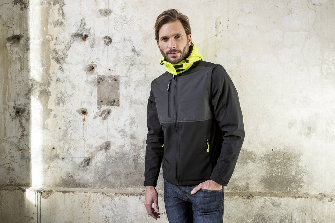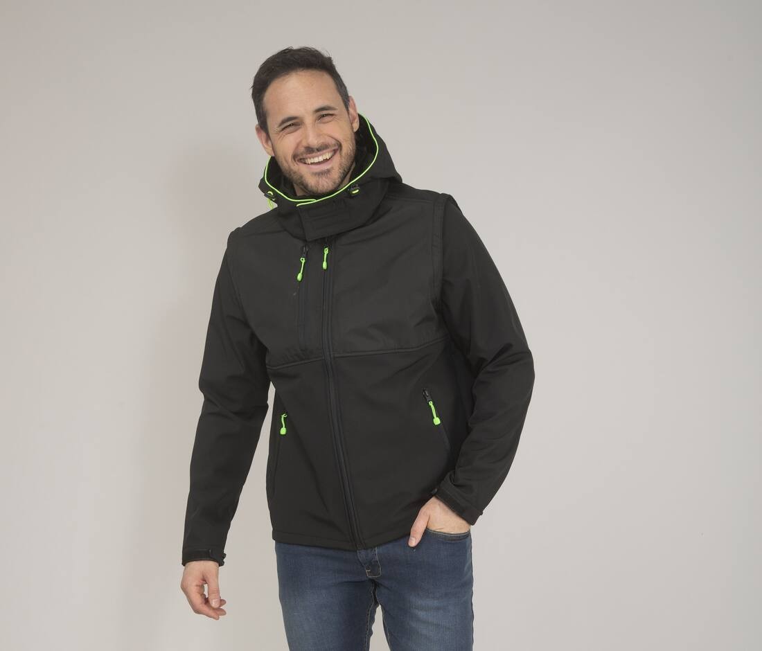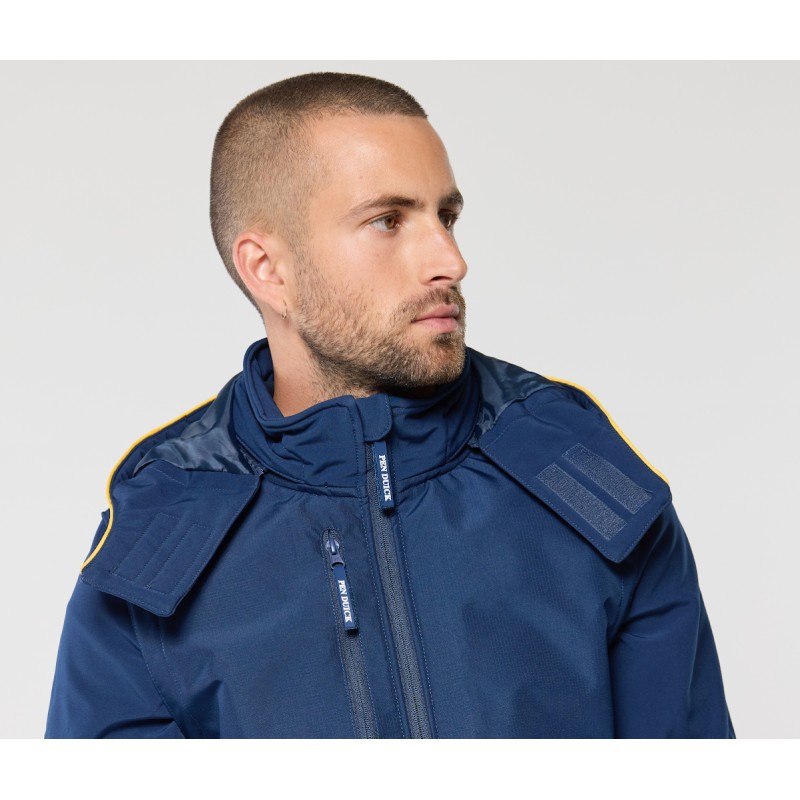 Possibilité d'ajouter les capuches Réf. PK995, Réf. PK996, Réf. PK997 (zip caché dans le col). Manches amovibles. Empiècement en ripstop sur le buste pour faciliter le marquage.