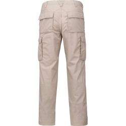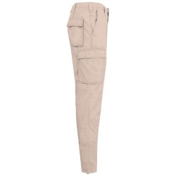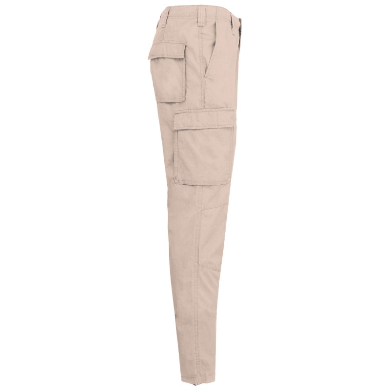 100% coton. Coton popeline. Tissu lavé pour un aspect souple et confortable. Cordons de serrage intérieur taille. Fermeture zippée et bouton pression. 2 poches italiennes côtés + 1 poche monnaie. 2 poches plaquées à soufflet avec rabat et bouton pression à l'arrière et côtés. Empiècements genoux.