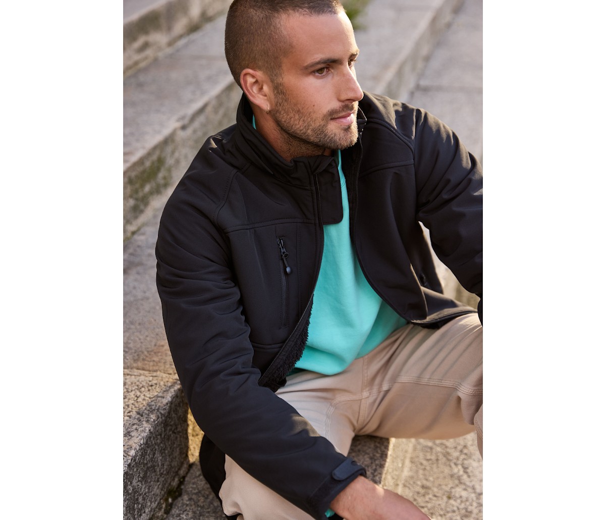 Softshell 3 couches imperméable et respirante. Possibilité d'ajouter les capuches Réf. PK995, Réf. PK996 et Réf. PK997 en option (zip caché dans le col). Intérieur en polaire Sherpa.