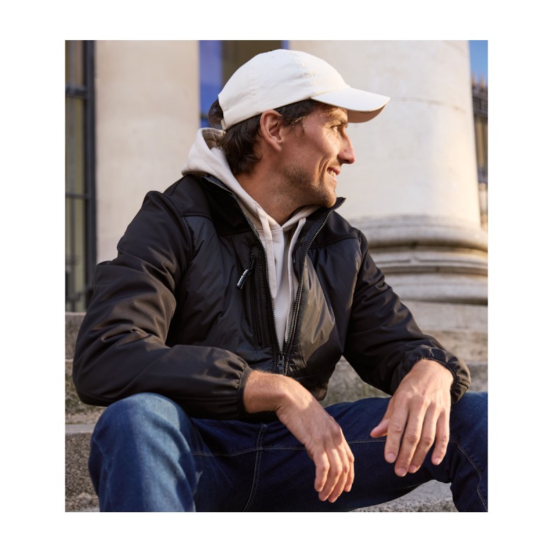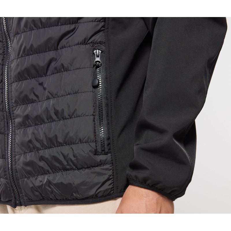 Blouson bi-matière (polyester Ripstop et Softshell 3 couches) déperlant et coupe-vent. Possibilité d'ajouter les capuches Réf. PK995, Réf. PK996 et Réf. PK997 (zip caché dans le col).