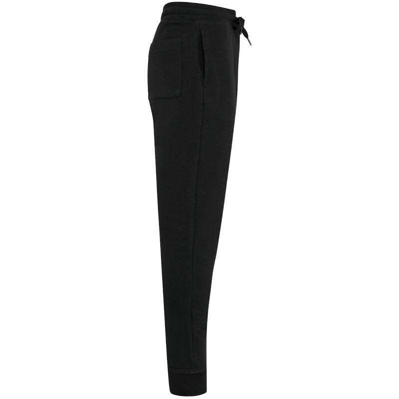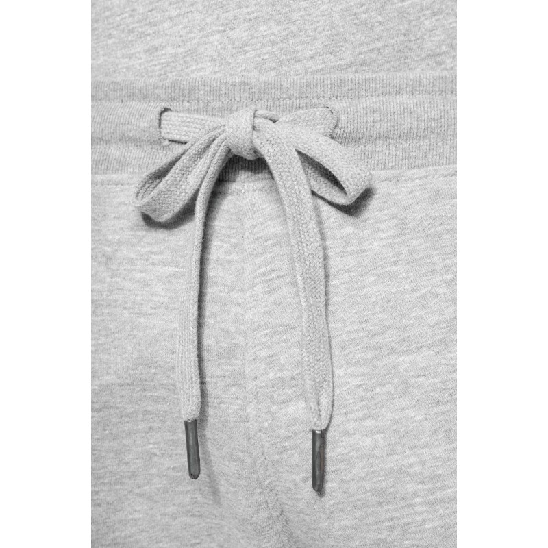 80% coton biologique / 20% polyester recyclé post-consumer. Oxford Grey 75% coton biologique / 25 % polyester recyclé post-consumer. Molleton non gratté french terry LST (Low Shrinkage Terry). Tissu : lavage aux enzymes. 2 poches côté et 1 poche arrière plaquée. Ceinture élastiquée en bord-côte 1x1 avec cordon de serrage plat ton sur ton avec finition embout métal. Bas de jambe en bord-côte 1x1. Pas d'étiquette de marque, uniquement une puce de taille pour faciliter la personnalisation.