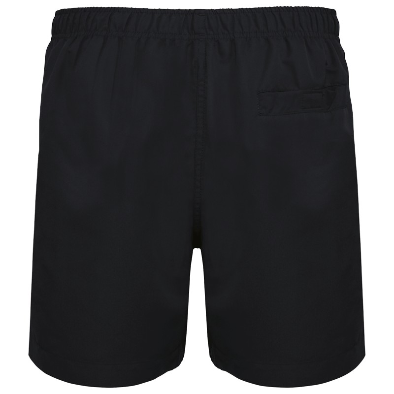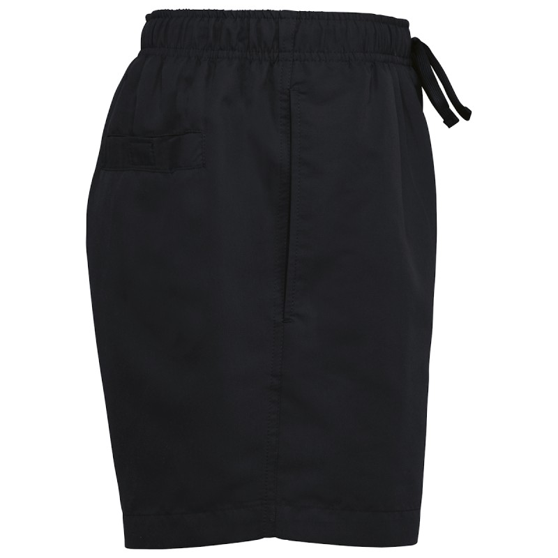 100% polyester recyclé post-consumer. Tissu sergé. Coupe ajustée. 2 poches côtés ouvertes avec sac de poche en maille filet. Ceinture élastiquée avec cordon de serrage plat. Slip intérieur en maille filet avec finition biais élastiqué pour plus de confort. Poche arrière passepoilée avec fermeture bande auto-agrippante. Double aiguille et point d'arrêt à l'entrejambe et sur les côtés.