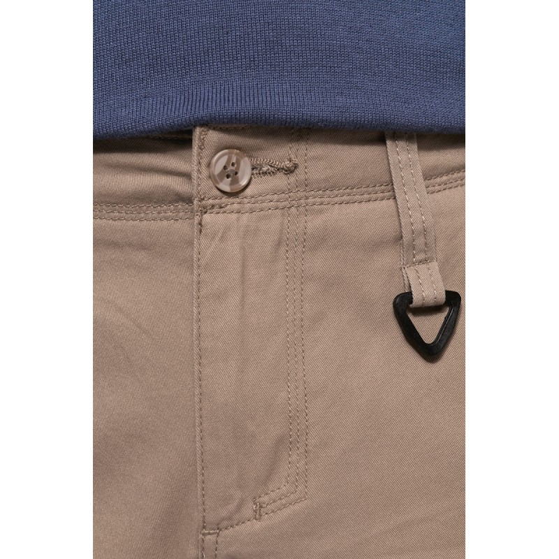 100% coton sergé. Lavage aux enzymes. Fermeture zippée avec bouton pression. 4 poches avant et 3 arrière. Bas de pantalon détachable par zip pour une version bermuda. Anneau plastique pour mousqueton à la ceinture. Ce produit a subi un traitement spécial et présente un aspect volontairement vieilli. Ce procédé de fabrication implique des variations de couleurs d'un produit à l'autre et rend chaque pièce unique.